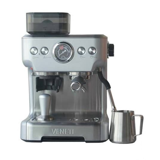 اسپرسوساز ونتی مدل VENETI VI5700CM دارای آسیاب و قابلیت آسیاب کردن دانه های قهوه با تنظیم اندازه آسیاب می باشد. قابلیت آسیاب در اسپرسوسازها از این رو بسیار حائز است که پودر قهوه پس از گذر رمان عطر و طعم خود را از دست می دهد، همچنین این قابلیت را دارد که یک دستگاه شما را از آسیاب شما بی نیاز کند.20 بار فشار