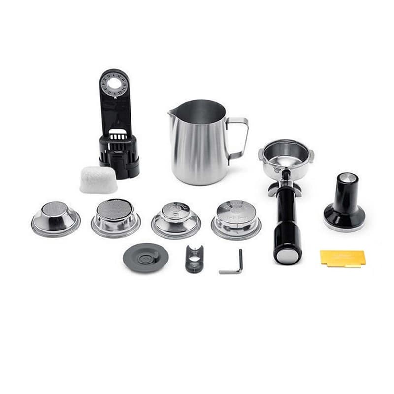 - دارای ابزار آماده سازی دوز دقیق (Razor)، جهت تمیز کردن قهوه اضافه از پرتا فیلتر