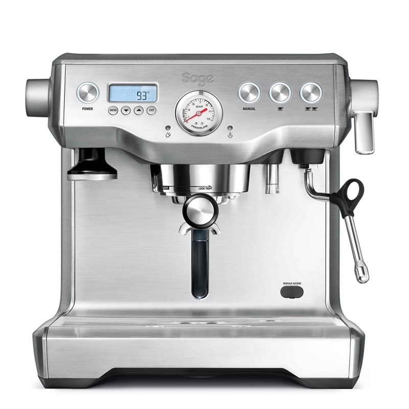 آب داغ می باشد. سیستم دم آوری این دستگاه مبتنی بر دو بویلر استیل ضد زنگ است که سبب می شود تا نتیجه به طور قابل توجهی بهتر و مطلوب تر باشد.اسپرسوساز سیج مدل SAGE BES920BSS علاوه بر مخزن آب دارای مخزن پودر قهوه از جنس استیل مخزن شیر، سیستم کاپوچینوساز، قابلیت تولید کف (فوم) شیر، نازل بخار با قابلیت چرخش به میزان