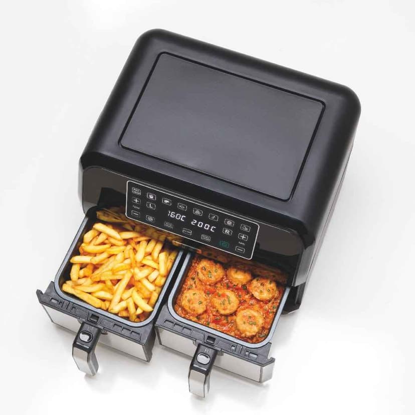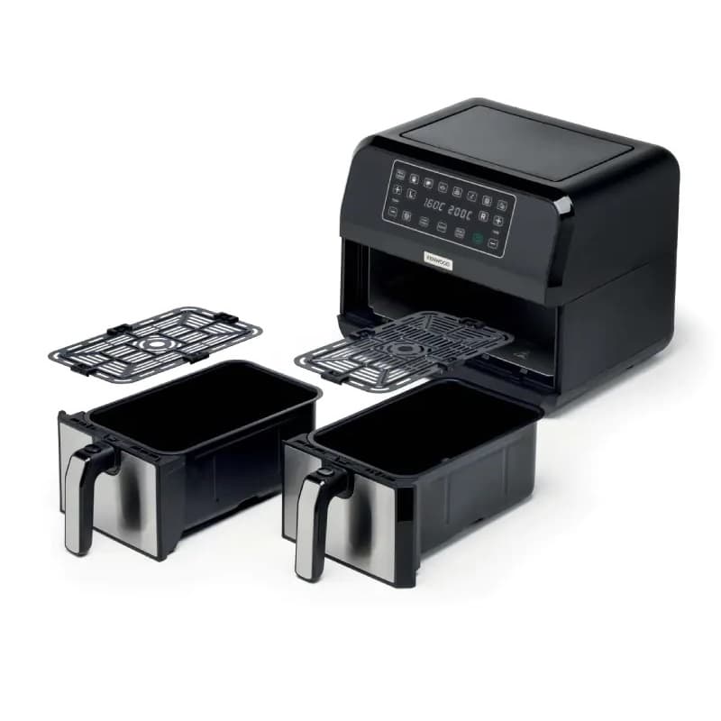 مشخصات سرخ کن کنوود مدل KENWOOD HFM75[/caption] سرخ کن کنوود مدل KENWOOD HFM75 با برخورداری از فناوری «Rapid Air» گردش هوای داغ و کاهش مصرف روغن، با توجه به این که برای سلامت عموم افراد مناسب است، به طرز قابل توجهی مناسب افراد ورزشکاری می باشد که نیاز به رژیم غذایی بدون روغن و طبخ مواد غذایی به صورت گریل دارند.سرخ کن کنوود مدل KENWOOD HFM75 محصولی چند کاره است که از عملکرد های آن می توان به سرخ کردن، گریل کردن،کباب کردن،پختن کیک و شیرینی اشاره نمود. این محصول دارای 2 سبد، هر سبد با ظرفیت 4 لیتر می باشد که ظرفیت کل 8 لیتر است.سرخ کن کنوود مدل HFM75 با بهره مندی از برنامه «dual cook» قادر به پخت همزمان هر دو سبد می باشد؛ همچنین این دستگاه، قابلیت استفاده از دو برنامه ی متفاوت برای هر سبد با پایان همزمان را «sync finish» دارد.سرخ کن کنوود مدل KENWOOD HFM75 دارای کانوکشن (فن)، تایمر و قابلیت تنظیم دما تا 200 درجه سانتی گراد است. همچنین دارای نشانگر روشن بودن دستگاه و نمایشگر با کنترل لمسی می باشد.[caption id="attachment_61569" align="aligncenter" width="377"]