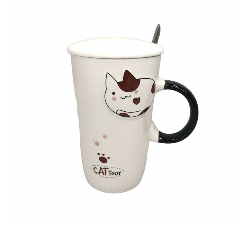 ماگ درب دار سرامیکی فانتزی طرح گربه کد 262