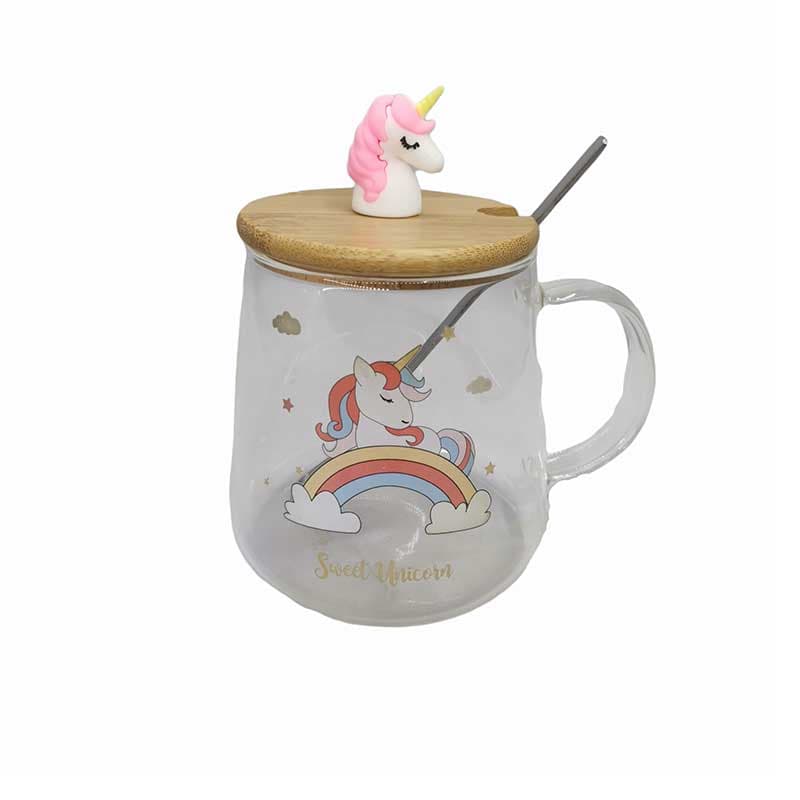 ماگ درب دار شیشه ای فانتزی طرح اسب تک شاخ کد266