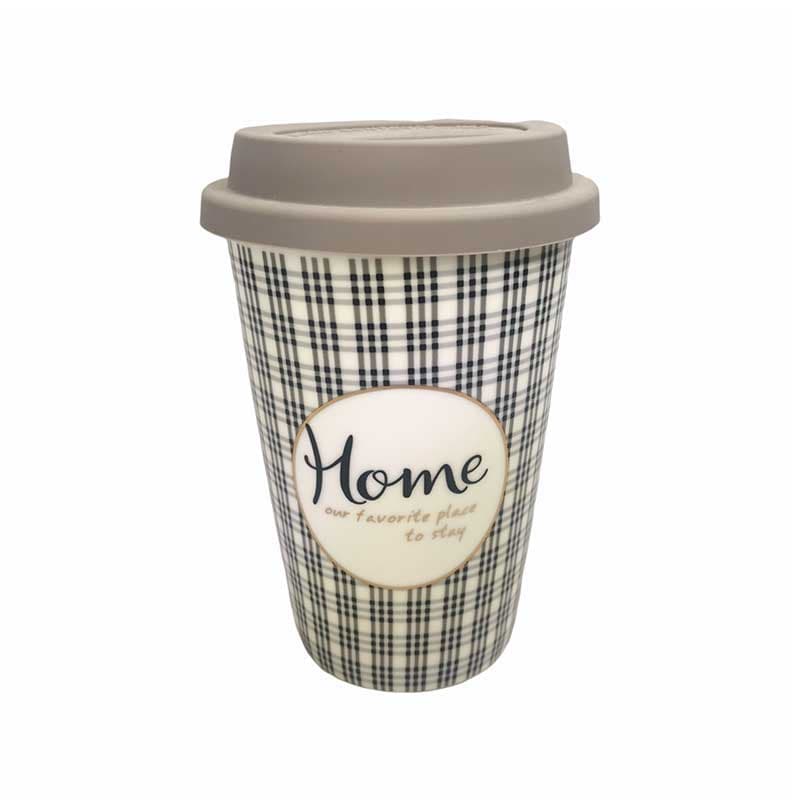 ماگ قهوه سرامیکی درب دار فانتزی طرح چهارخونه کد302