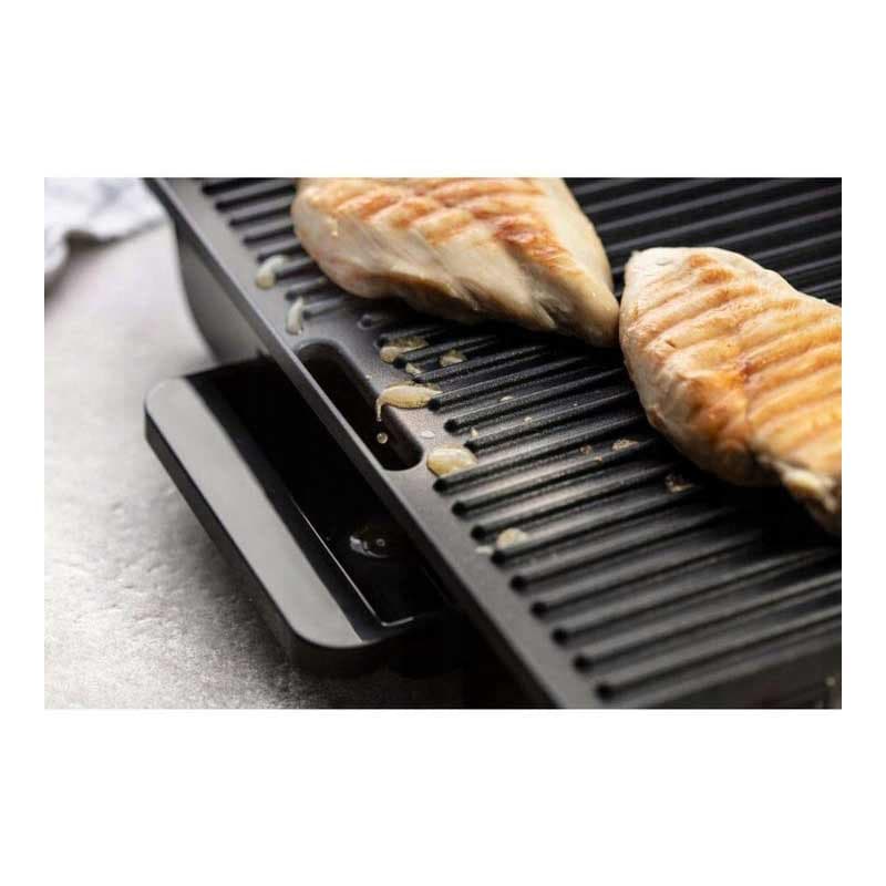 گریل تفال مدل GC3050 دستگاهی چند منظوره و کاربردیست که با بهره گیری از توان 2000 وات، برای مصارف مختلفی همچون گریل، توستر، باربیکیو و ساندویچ ساز تولید و عرضه شده. طراحی این دستگاه به گونه ای است که می توان از آن برای تست نان نیز استفاده کرد و ساندویچ های خوشمزه ای را تنها در 2 دقیقه آماده نمود. این مدل به دلیل داشتن اندازه کوچک و جمع و جور، فضای چندانی را در آشپزخانه ها اشغال نمی کند و در صورت لزوم می توان از قابلیت قرارگیری به صورت عمودی نیز بهره جست. در قسمت پایین گریل، ولوم چرخشی قرار دارد که جهت پخت مواد غذایی در 3 حالت همچون برشته کردن، آبدار و یا پخت معمولی قابل استفاده می باشد. با کمک این گریل می توان انواع گوشت و سبزیجات را بدون نیاز به اضافه کردن روغن یا کره کباب کرد و از طریق نشانگرهایی که بر روی آن طراحی شده از وضعیت پخت مطلع گشت. همچنین گریل 3050 تفال به سیستم یخ زدایی نیز مجهز شده تا بتوان از مواد غذایی فریز شده نیز بدون معطلی استفاده کرد.گریل Tefal GC-3050 از صفحات متحرکی از جنس نچسب ساخته شده و توسط دکمه ای قابل جداسازی و تعویض می باشند. مواد باقیمانده از غذاها به صفحات نمی چسبند و همین ویژگی به کیفیت پخت غذا و شستشوی آسان دستگاه کمک شایانی می کند. ترموستات قابل تنطیم و سینی جمع آوری عصاره غذاها از دیگر امکانات برجسته این گریل تفال محسوب می شود. ناگفته نماند، به لطف سینی چربی گیر، تمامی روغن های حاصل از پخت مواد غذایی در آن جمع آوری شده و در نتیجه می توان بواسطه این کباب پز برقی تفال از خوردن وعده های غذایی سالم تری لذت برد.