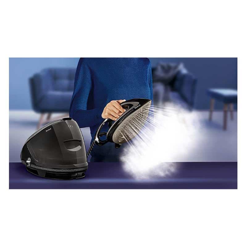 اتو بخار تفال مدل GV9620، یکی از قدرتمندترین و هوشمندترین محصولاتی است که با ترکیب بخار خروجی و فناوری Smart Steam به بازار عرضه شده. این اتو دارای یک سنسور هوشمند است که حرکت اتو را تشخیص داده و بخار را به صورت خودکار تنظیم می کند و تجربه یک اتوکشی حرفه ای را با حداکثر بهره وری در کف دستان کاربران قرار می دهد. این اتو بخار فشار بالا، با خروجی مداوم تا 180 گرم در دقیقه، مدت زمان اتو را با اوج بازدهی کوتاهتر می کند، در حالی که قدرت شدید 650 گرم در دقیقه افزایش بخار، عمیق ترین و سرسخت ترین چین خوردگی ها را به راحتی از بین می برد و حتی برای اتو کشیدن پارچه های ضخیم بسیار ایده آل می باشد. یک پنل کنترلی لمسی جهت دسترسی آسانتر، بر روی دسته قرار گرفته که می توان از این طریق با انجام  تنظیمات هنگام تعویض بین پارچه های مختلف، در وقت صرفه جویی کرد. GV9620 با 5 تنظیم از پیش تعیین شده، ترکیب مناسب بخار و دما برای هر پارچه را تضمین می کند.این اتوی تفال کاملا بی صدا طراحی شده و 2 برابر بی صدا تر از دیگر مدل های موجود در بازار می باشد. صفحه کف بسیار نازک Durilium AirGlide Autoclean یکی از جدیدترین و منحصر به فردترین تکنولوژی های روز دنیاست. این فناوری جدید Durilium AirGlide با 33٪ سر خوردن بیشتر و عملکرد طولانی مدت، اتوکشی سریع و بدون دردسر تضمین می کند. همچنین تفال برای راحتی کار، مخزن را به صورت متحرک و با قابلیت جابجایی ارائه کرده تا بتوان به آسانی و در صورت نیاز آن را پر کرد و به دلیل برخورداری از محافظ، با امنیت کامل و ایمن آن را حمل نمود.TEFAL PRO EXPRESS ULTIMATE به سیستم محافظ دوگانه ضد رسوب و ضد چکه مجهز شده است. این دو ویژگی باعث می شوند تا با آرامش کامل از سیستم ضد رسوب بهره برد و از عملکرد بخار طولانی مدت اتو اطمینان یافت. همچنین به لطف سیستم ضد چکه ( Protect System )، قطرات آب به بخار تبدیل می شود و از ایجاد لک بر روی لباس ها جلوگیری می کند. اتو بخار Tefal GV 9620 با برخورداری از کارایی حرفه ای، یک دستگاه با تکنولوژی دیگ بخار فشار بالا تا 8 بار است که نتایج بی عیب و نقص استثنایی را در اختیار کاربران قرار می دهد.