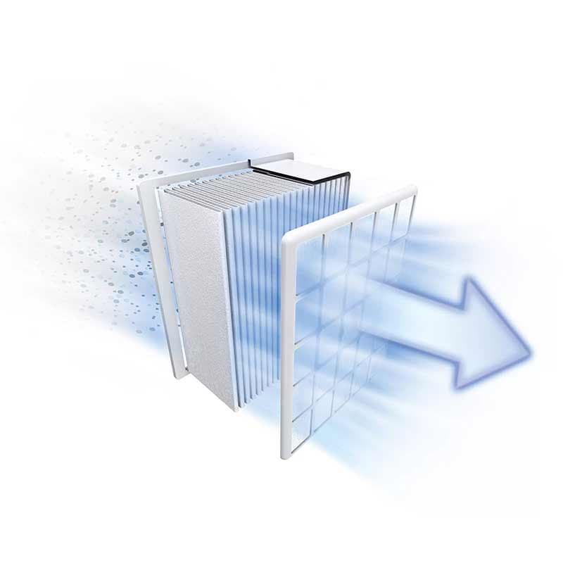 «HEPA»، قادر به جذب ذرات ریز و دشت گرد و غبار و ... می باشد به طوری که راه خروج این ذرات جمع آوری شده از محیط، را مسدود کرده که مانع خروج آن ها از دستگاه به محیط می گردد.
