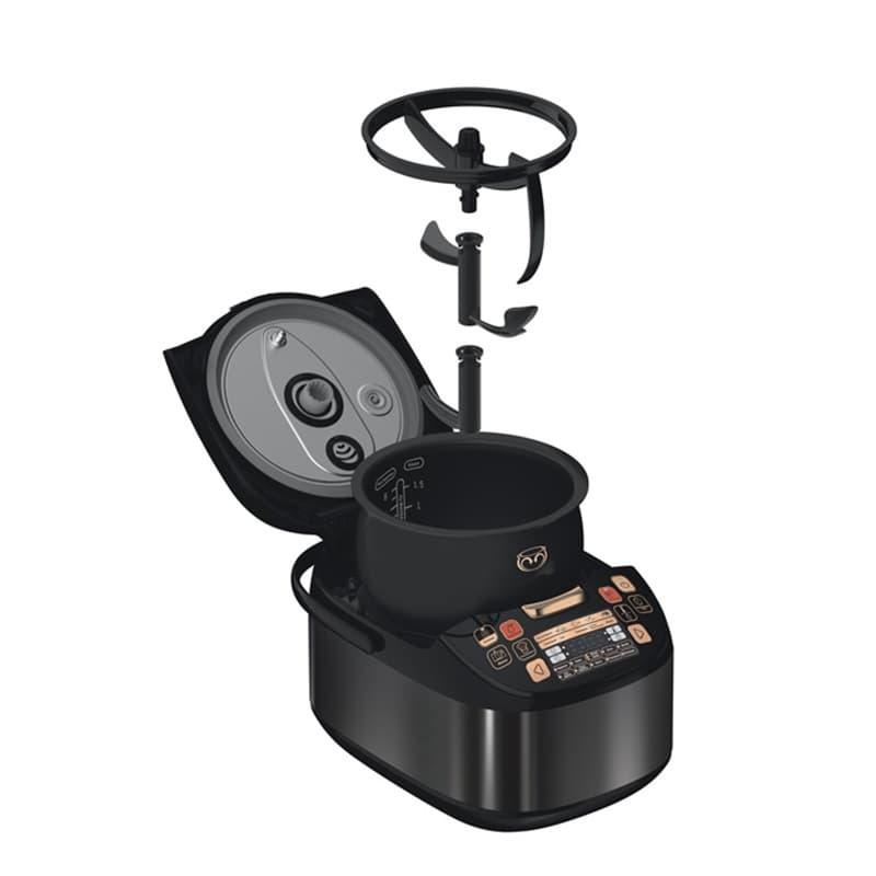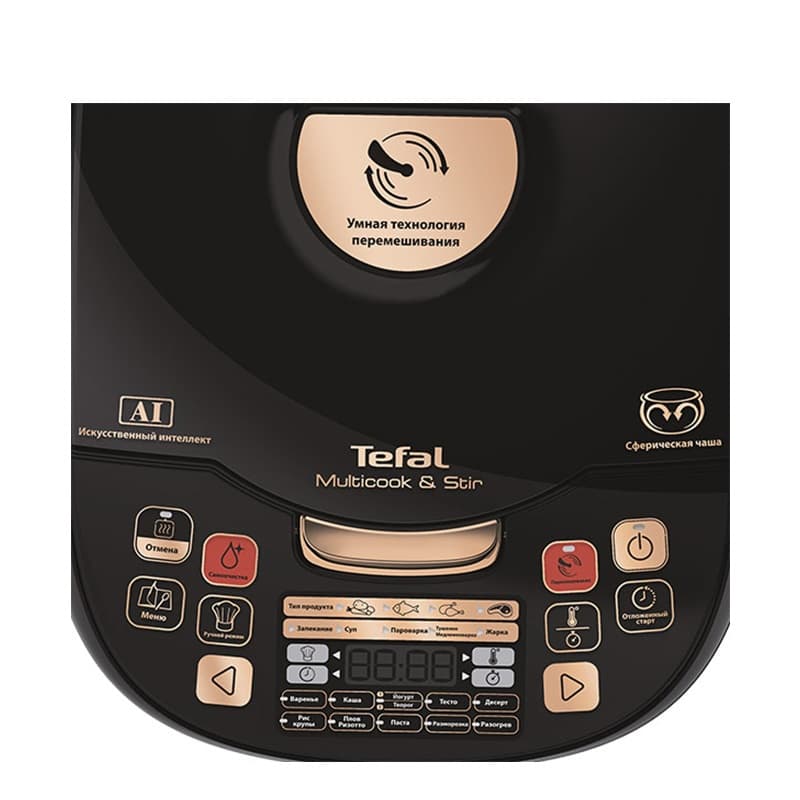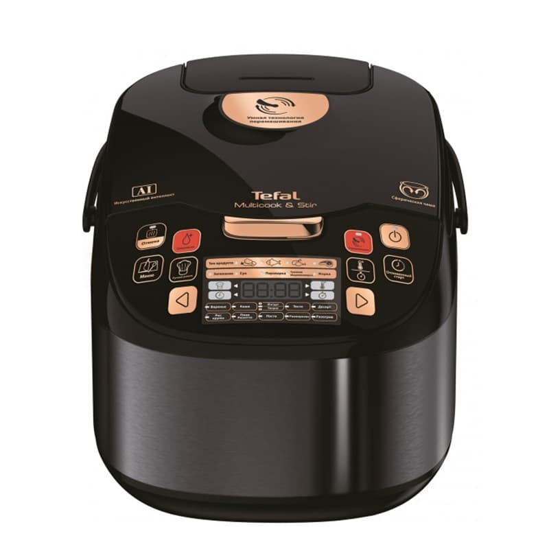 مولتی کوکر تفال مدل TEFAL RK9018 دارای بازوی متحرک (برای همزدن غذا و شستشو آسان با استفاده برنامه از پیش تعیین شده)، پایه لاستیکی برای ثبات بیشتر دستگاه، سیستم خاموش شدن خودکار، قابلیت کنترل دما، نشانگر سطح آب، تایمر و دستگیره قابل حمل می باشد.