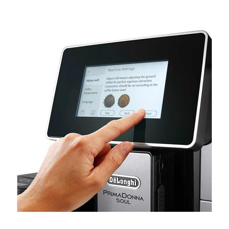 اسپرسوساز دلونگی مدل ECAM 610.75.MB از برنامه های پیش فرض نظیر آبکشی، رسوب زدایی، اتصال به WiFi، تنظیم اندازه آسیاب قهوه، دمای قهوه، زبان دستگاه، تغییر تصویر و رنگ آیکن، خاموش شدن خودکار، هشدار صوتی، حالت ذخیره انرژی، فیلتر آب، سختی آب، تنظیم کارخانه و عملکرد آمار دستگاه بهره مند است. [caption id="attachment_63367" align="aligncenter" width="222"]