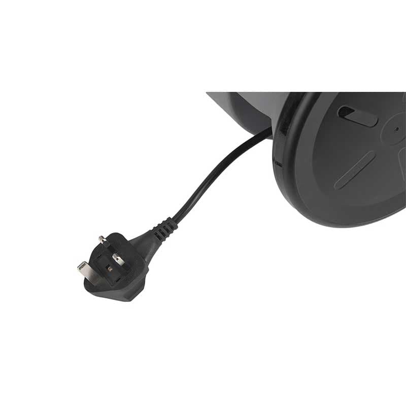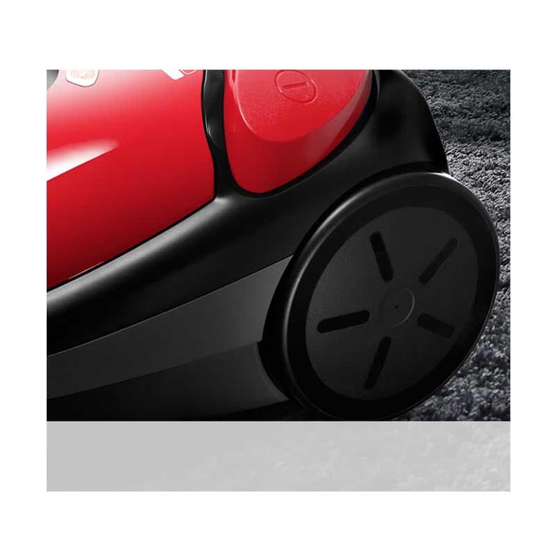 3 چرخ پلاستیکی (2 چرخ بزرگ برای حرکت آسان)، سیم جمع کن پدالی، دستگیره ارگونومیک (برای حمل آسان) لوله