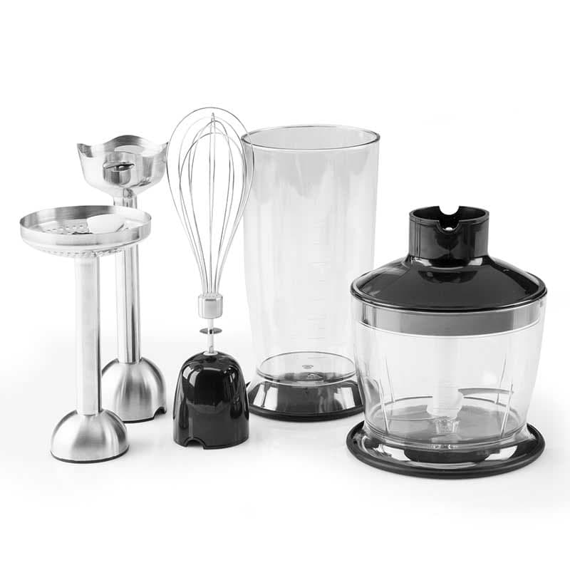 عملکردهاپیمانه شفاف درجه بندی شده برای مخلوط کردن ، همزن بالونی از جنس استیل ضد زنگ برای هم زدن سفیده تخم مرغ، خامه یا مخلوط کردن خمیر پن کیک ، خردکن و همزن مناسب برای انواع مواد غذایی ، پوره ساز برای تهیه پوره سیب زمینی و فرنی هویج