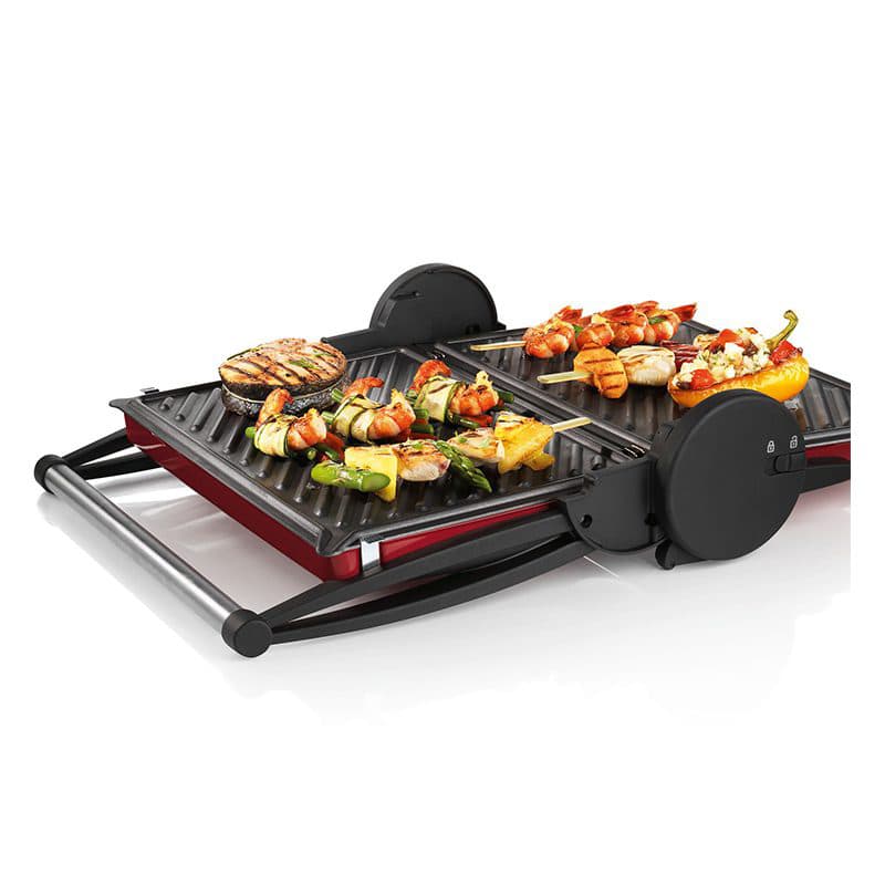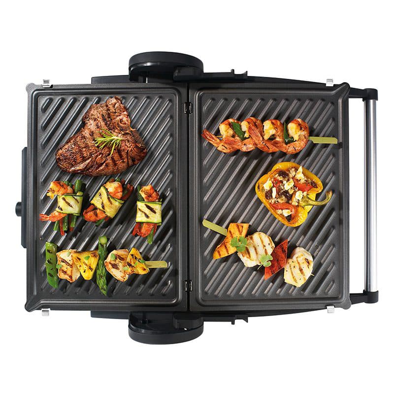عملکردهاگستره ای از قابلیت ها با سه حالت مختلف گریل: قابلیت بسته شدن برای تماس مستقیم با گریل، قابلیت باز شدن به عنوان میز گریل، حرارت دادن از بالا و پایین بشقاب برای حالت گراتین /فر