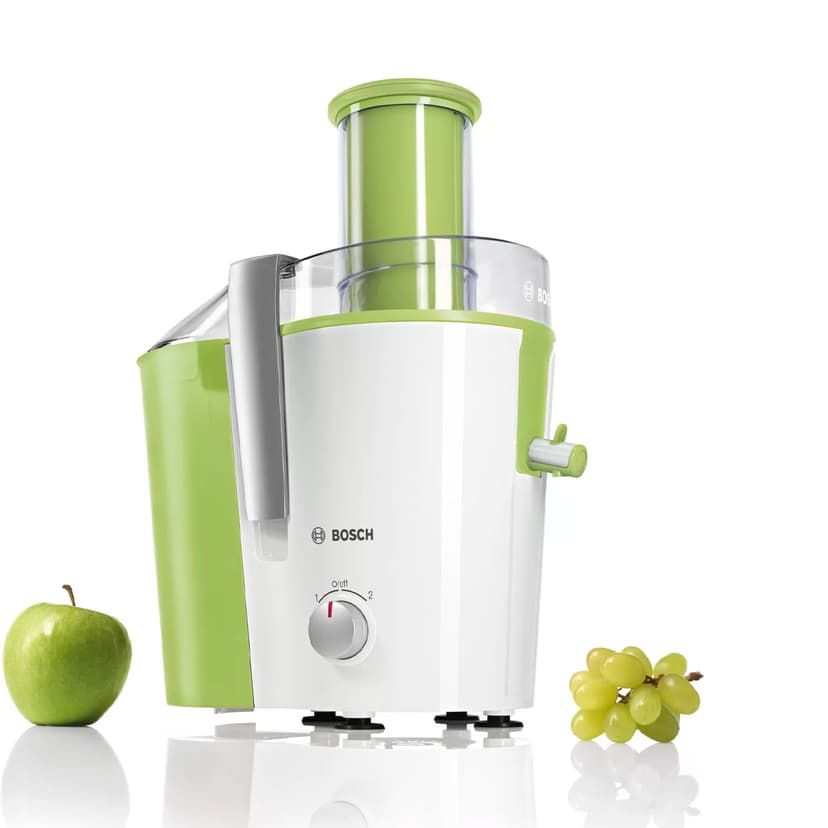 آبمیوه گیری بوش BOSCH مدل MES25G0 با بدنه ای از جنس پلاستیک مقاوم و ترکیب رنگ سفید و مشکی  جلوه منحصر به فردی به محصول میبخشد . آبمیوه گیری MES25G0 با توان 700 وات ، توانایی آبگیری انواع میوه و سبزیجات را فراهم می نماید و توسط ولوم تعبیه شده روی دستگاه میتوان سرعت در 2 درجه تنظیم نمود که از سرعت کم برای میوه های نرم و از سرعت بالا برای میوه های سفت تر استفاده میشود. دهانه ورودی عریض این دستگاه در ابعاد 73 میلی متر بوده که نیاز به خرد نمودن میوه هایی با ابعاد سیب را رفع می نماید و میتوان به صورت کامل آن درون آبمیوه گیری قرار داد . تیغه دستگاه از جنس استیل ضد زنگ بوده که مقاومت بسیار بالایی به رطوبت دارد . مخزن تفاله آبمیوه گیری بوش دارای ظرفیت 2 لیتر بوده که حجم زیادی از تفاله را در خود جای میدهد و نیازی به تخلیه سریع ندارد. پارچ پلاستیکی دستگاه نیز از جنس پلاستیک مقاوم با ظرفیت 1.25 لیتر میباشد . ویژگی منحصر به فرد این دستگاه سیستم ضد چکه آن است که از چکه نمودن آب میوه بر روی سطوح جلوگیری می نماید. این آبمیوه گیری مجهز به سیستم ایمنی هوشمند بوده که تنها پس از قرار گیری کامل تمام اجزا ، روشن میشود.