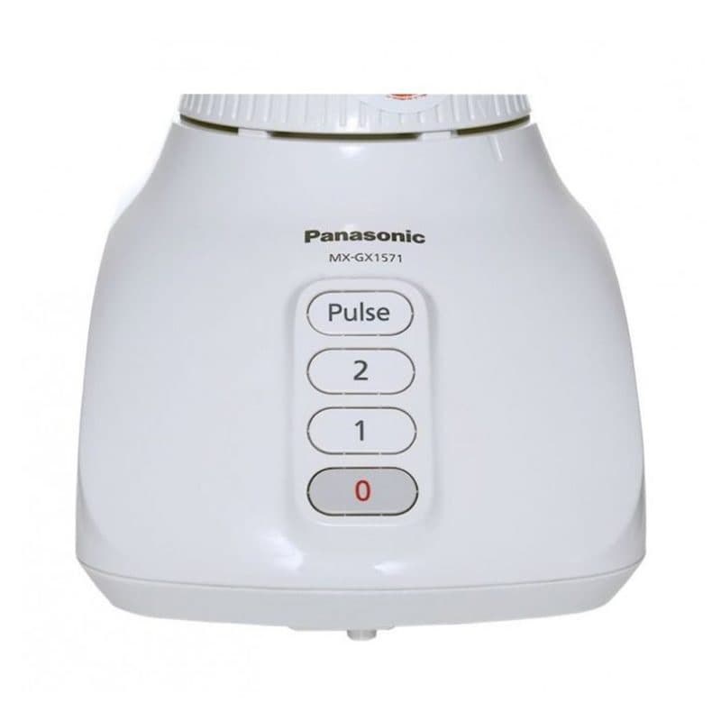 مخلوط‌کن پاناسونیک MX-GX1571 یکی از دستگاه‌های دوست‌داشتنی شرکت پاناسونیک است که با قدرت مقبول خود می‌تواند عمل خردکردن و مخلوط کردن را به‌خوبی انجام دهد. بدنه این دستگاه از جنس پلاستیک و به رنگ سفید است و دارای پایه های ضدلغزش می باشد تا در هنگام فعالیت دستگاه حرکت نکرده و سرجایش ثابت باشد. سرعت مخلوط‌کن پاناسونیک MX-GX1571 توسط دکمه‌های روی بدنه در دو حالت تنظیم می‌شود و همچنین دکمه پالس یا حالت چرخش لحظه‌ای نیز قابل‌استفاده است. پارچ این دستگاه با ظرفیتی کمتر از 2 لیتر می‌تواند تا 6 لیوان آب‌میوه طبیعی و گوارا را در خود جای دهد. شیشه‌ای بودن این پارچ استحکام و زیبایی‌اش را افزایش می‌دهد. به همراه این دستگاه دو آسیاب کوچک نیز ارائه می‌شود که با استفاده از آن‌ها می‌توان پودرهای متنوع و مختلفی درست کرد.