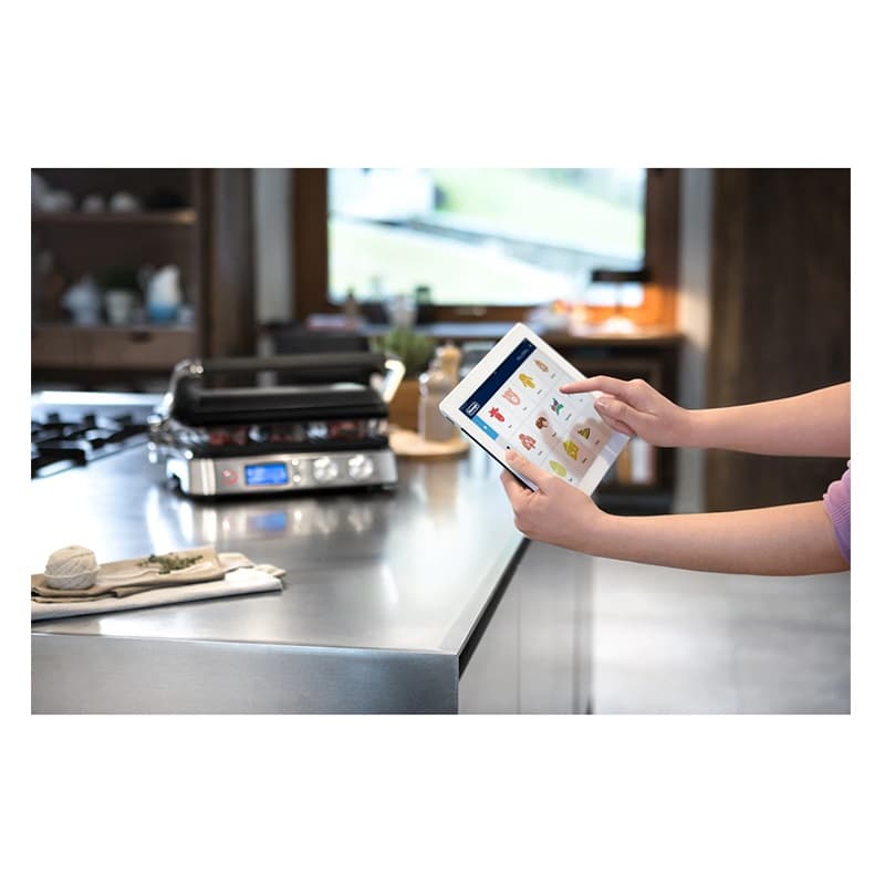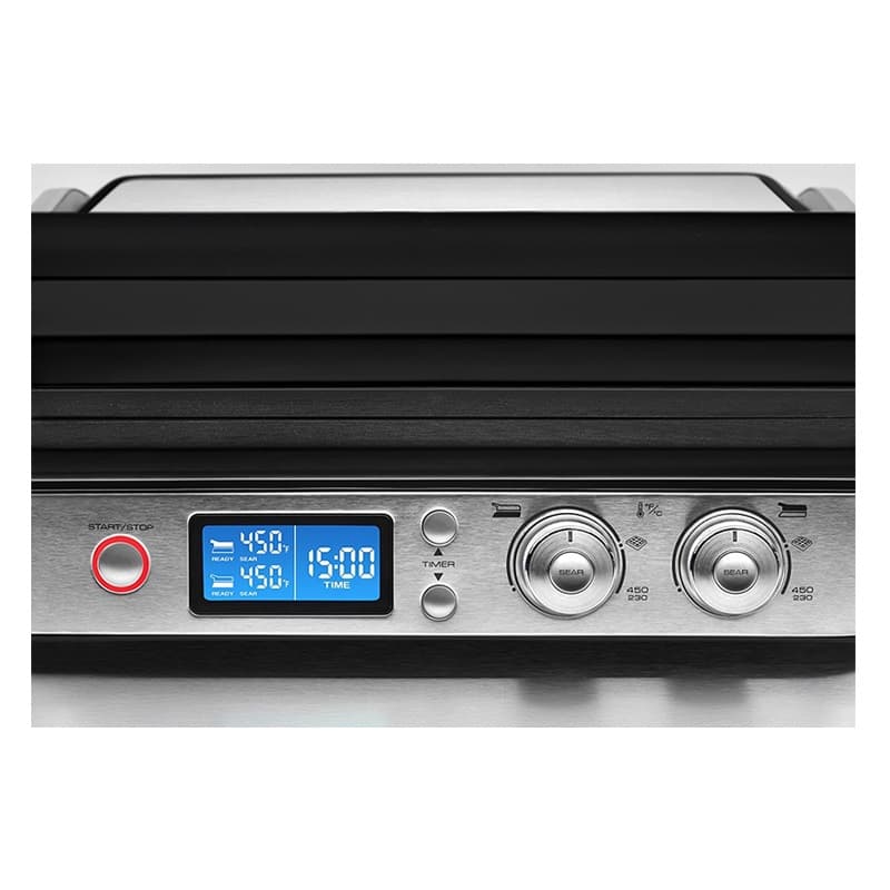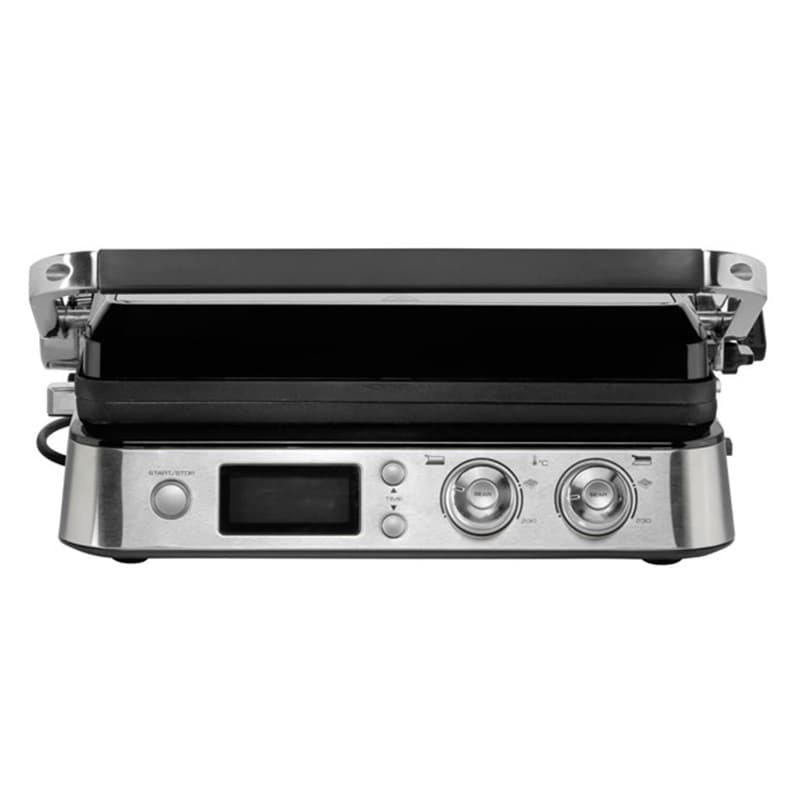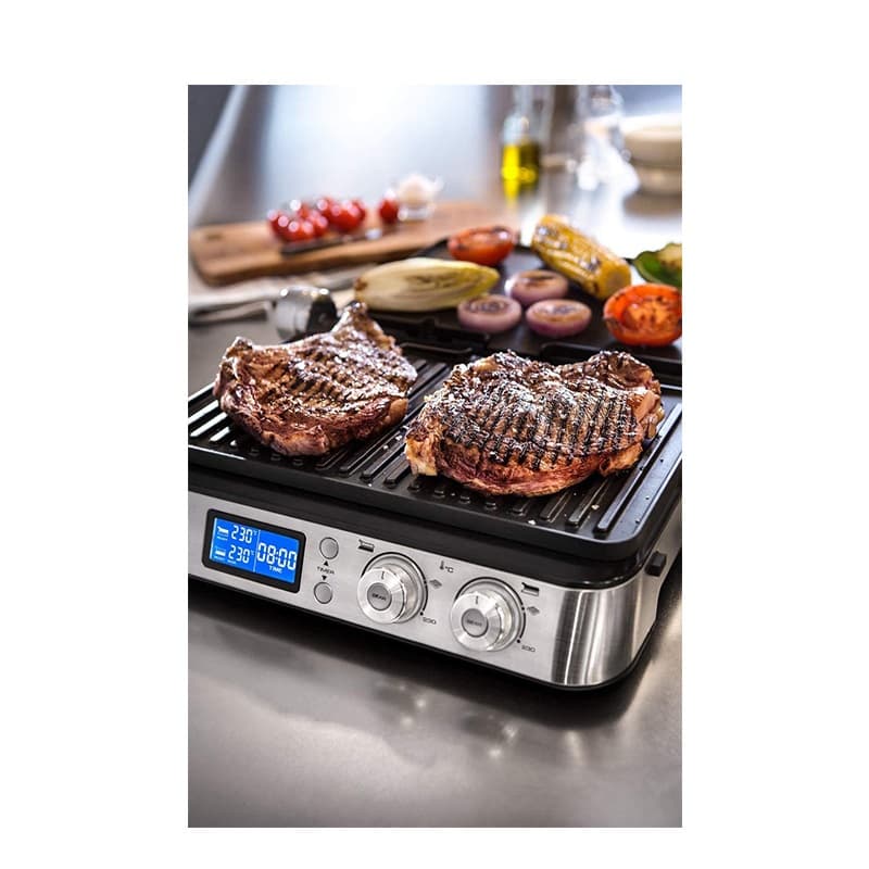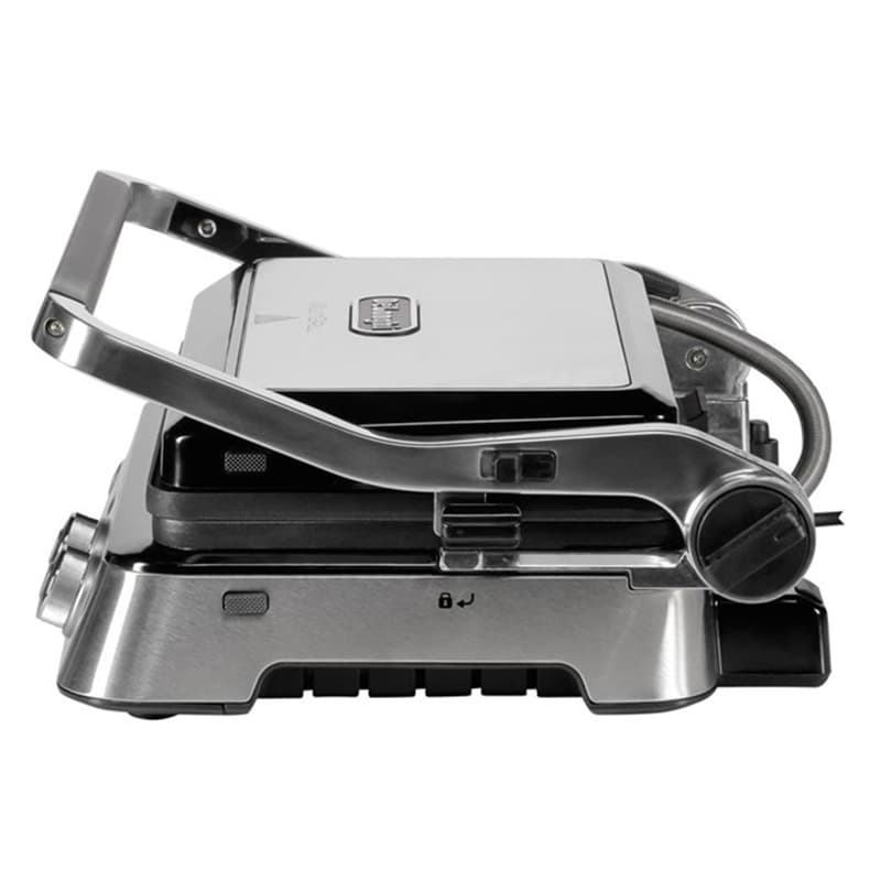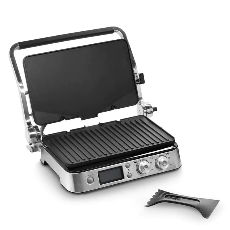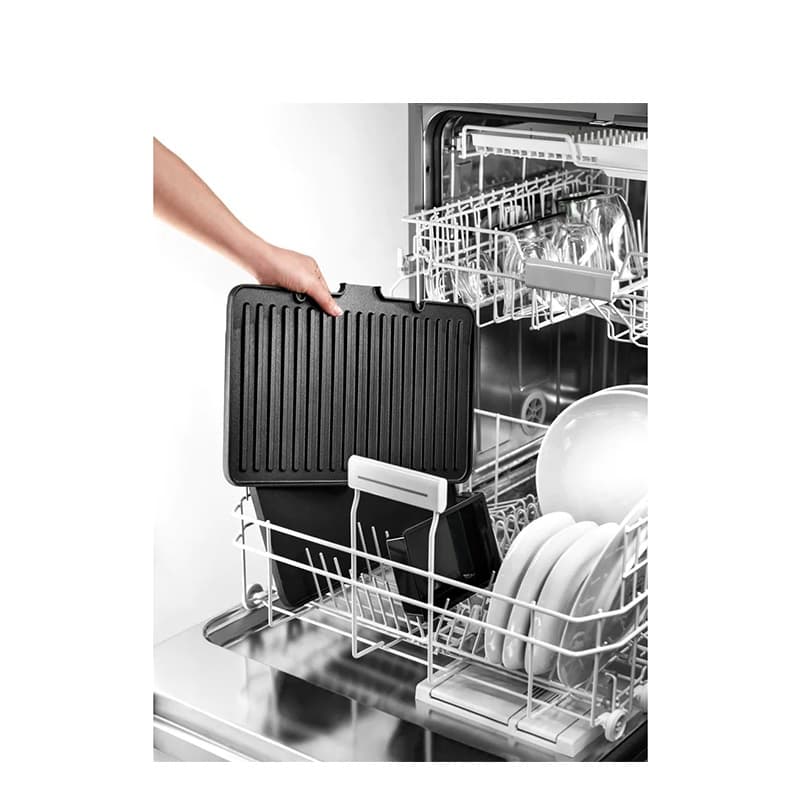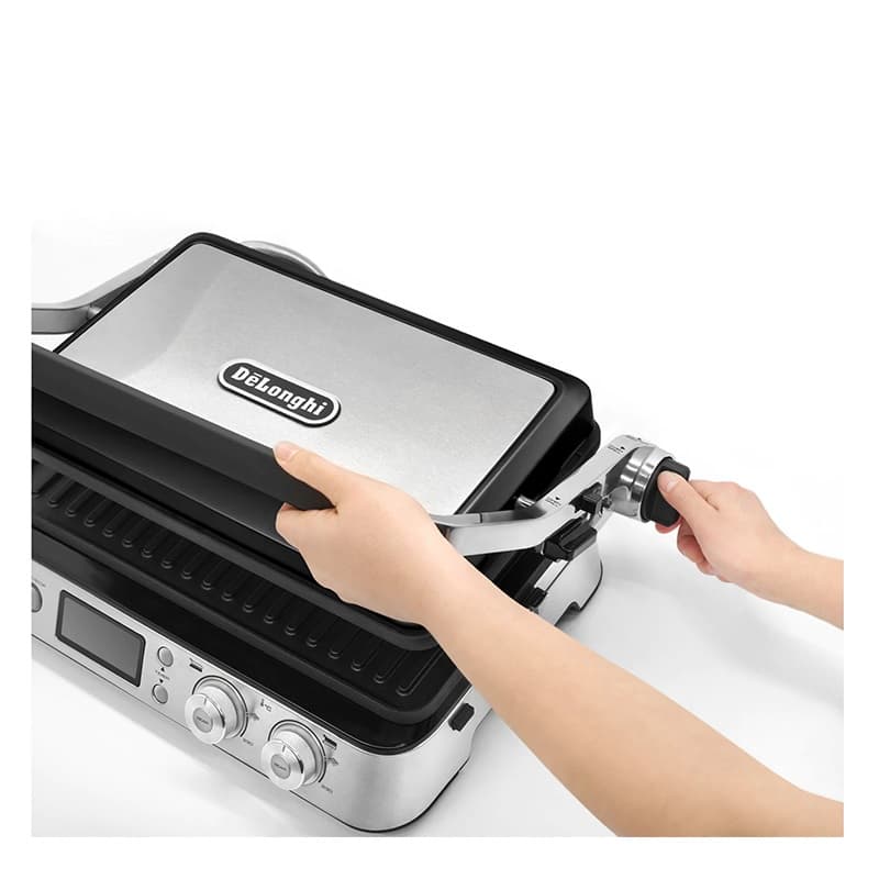 بدون شک دستگاه های گریل یکی از بهترین راه حل ها برای طبخ غذا ها با روغن کم و به صورت رژیمی می باشد که از میان تمامی دستگاه های گریل موجود در بازار گریل دلونگی مدل 1012D یکی از بهترین آنان می باشد. این دستگاه دارای صفحاتی کاملا نچسب با قابلیت جدا شدن و همچنین شست و شو درون ماشین ظرف شویی می باشد . صفحات این دستگاه در حالت های مختلف با زوایای مختلف قرار میگیرند که می توانید بسته به نوع ماده ی غذایی مورد استفاده ی خودتان آن ها را به صورت کاملا بسته و با کاملا باز یا نیمه باز قرار دهید. دستگاه گریل دلونگی مدل 1012D دارای یک صفحه نمایشگر LED می باشد که روی آن میزان حرارت و همچنین تایمر آن نمایش داده می شود که هر دوی آنها به سادگی قابل تنظیم هستند و شما می توانید بدون نگرانی از سوختن غذا از این دستگاه گریل استفاده کنید.