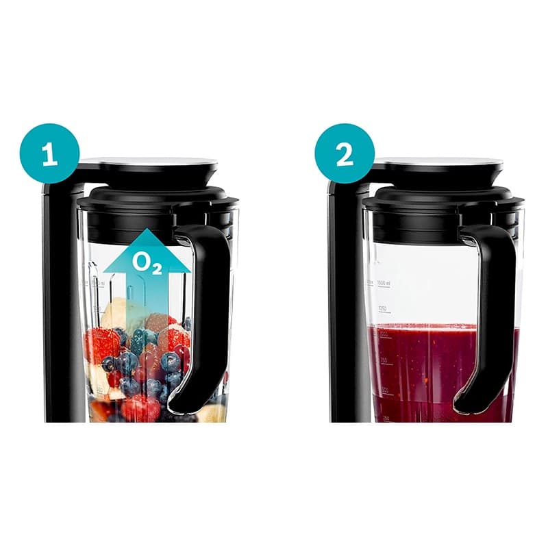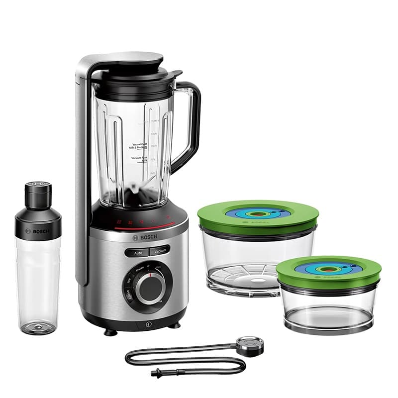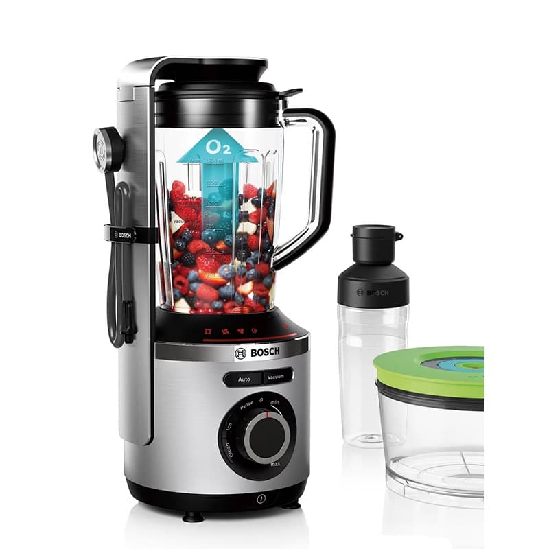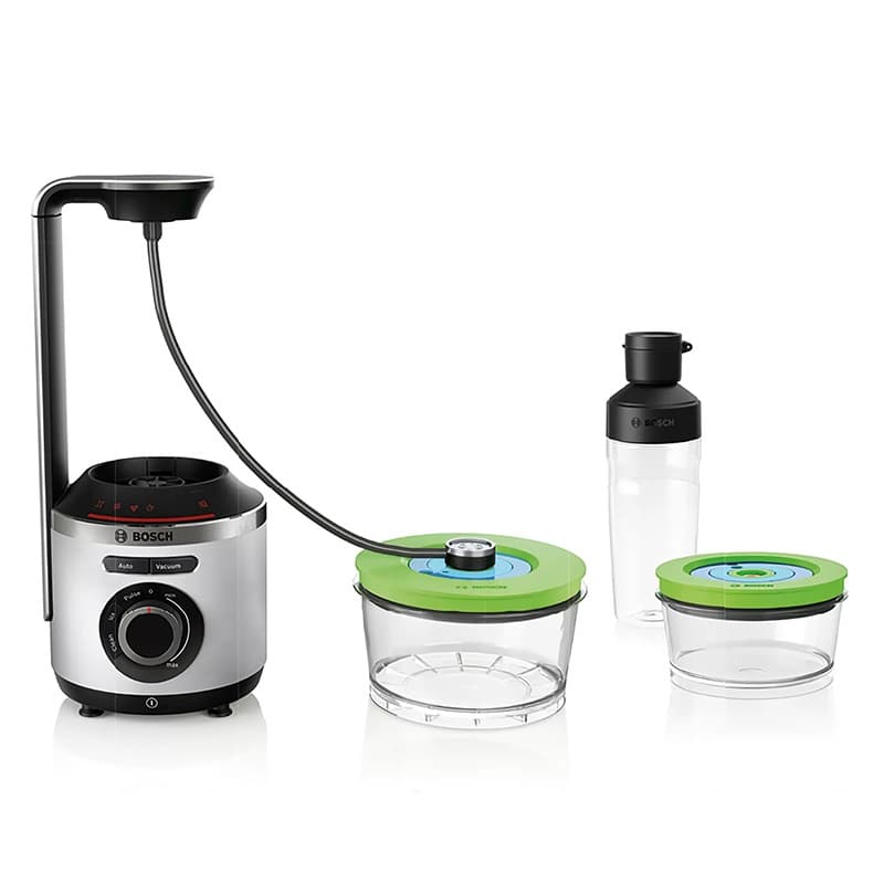 مخلوط کن MMBV625M بوش دارای پارچ 1.5 لیتری از جنس پلاستیک تریتان و مقاوم به دما بوده که دارای برنامه خودکار برای خرد نمودن یخ و خرد کن مواد دیگر و وکیوم کردن می باشد. وکیوم کردن به واسطه از بین بردن اکسیژنی که در فضای مخلوط کن وجود دارد باعث ماندگاری بیشتر ویتامین می شود. میکسر این دستگاه ویتامکس با کارایی بالا و بیشتر از سی هزار چرخش در دقیقه می باشد.