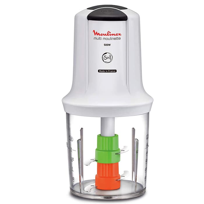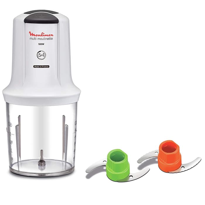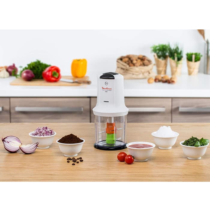 خردکن مولینکس مدل AT72 با موتور قدرتمند 500 وات، ساخت این کشور مطرح فرانسوی است که برای خرد کردن سریع و یکنواخت موادی همچون گوشت، خشکبار، سبزیجات و تهیه سوپ و سس بسیار کاربردی می باشد. بدنه این دستگاه از جنس پلاستیک ساخته شده و بر روی آن دکمه فشاری جهت روشن کردن دستگاه تعبیه گردیده است. این دستگاه به قفل ایمنی نیز مجهز شده و با فشردن دکمه، دستگاه شروع به کار می کند و با برداشتن دست از روی دکمه، عملکرد دستگاه متوقف می شود و همین ویژگی، از بروز حوادث احتمالی در زمان کارکرد دستگاه، جلوگیری می نماید و همچنین هنگامی که قطعات به درستی در جای خود قرار نگیرند، دستگاه شروع به کار نخواهد کرد. در کنار دکمه اصلی، دکمه توربو تعبیه شده و از آن می توان برای خرد کردن مواد غذایی سخت تر با سرعت بیشتری استفاده نمود. تیغه Moulinex AT 72 به صورت دو طرفه از جنس استیل ضد زنگ بوده و با استحکام بالای خود، امکان خرد کردن هر نوع مواد غذایی مانند (دانه های قهوه، ادویه جات) و حتی یخ را به خوبی فراهم می سازد. ظرف پلاستیکی این خردکن مولینکس با ظرفیت 0.5 لیتر عرضه شده و به دلیل شفاف بودن آن، می توان میزان خرد شدن مواد را کنترل کرد.