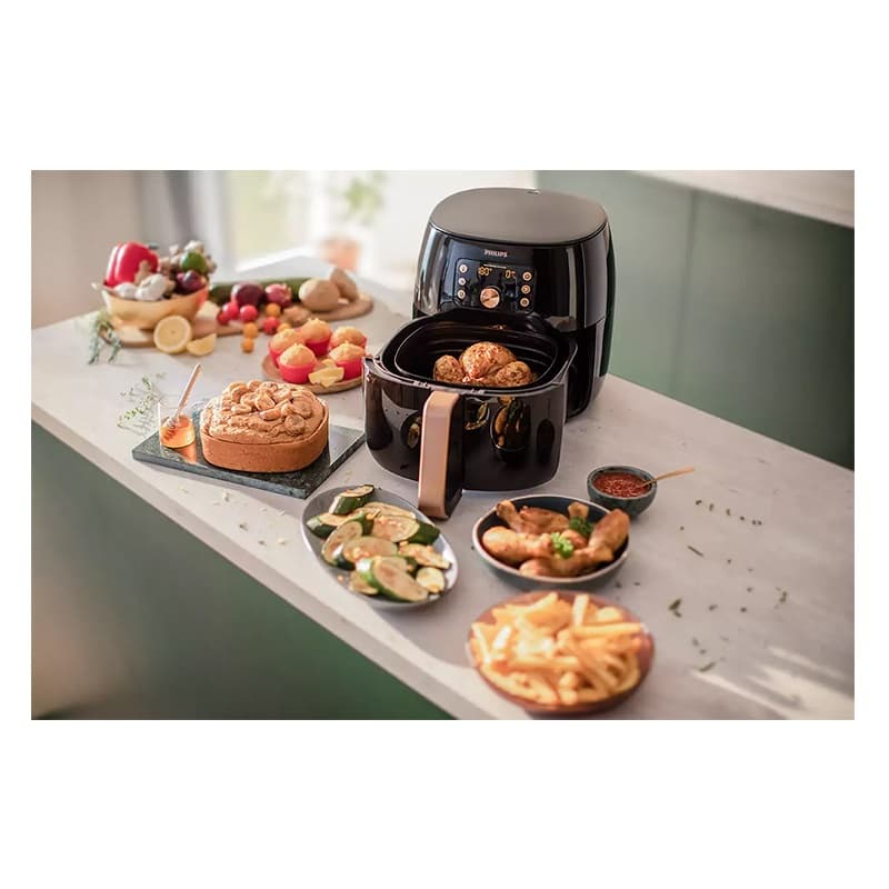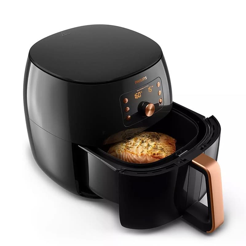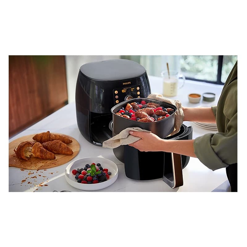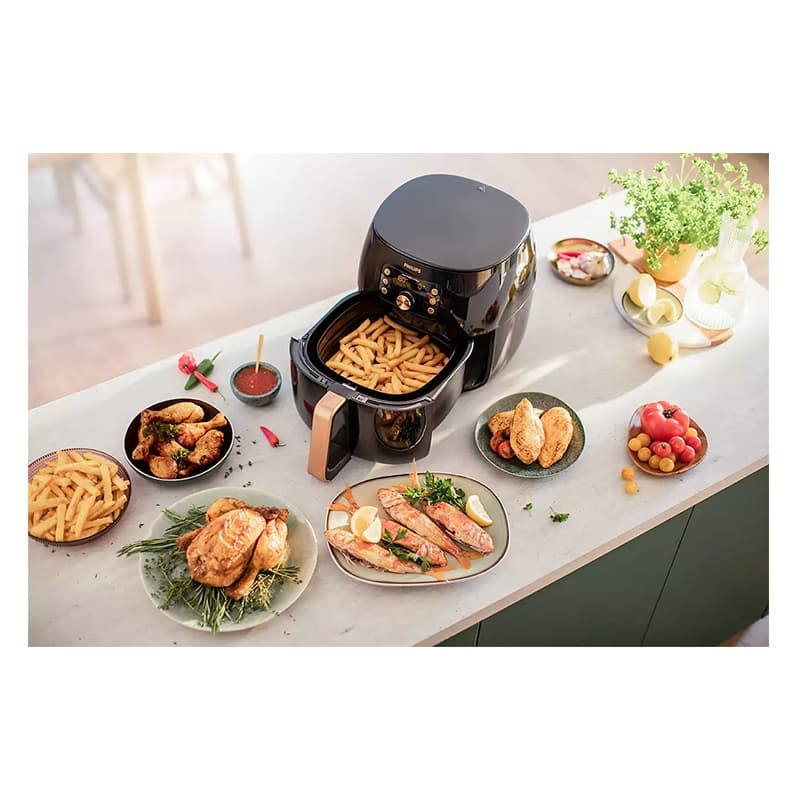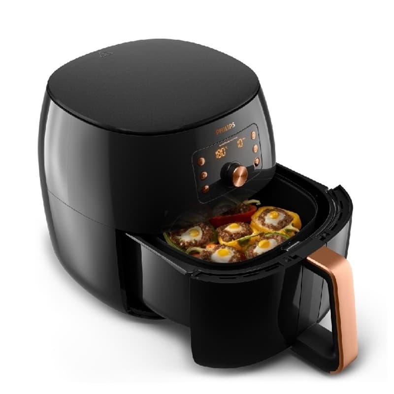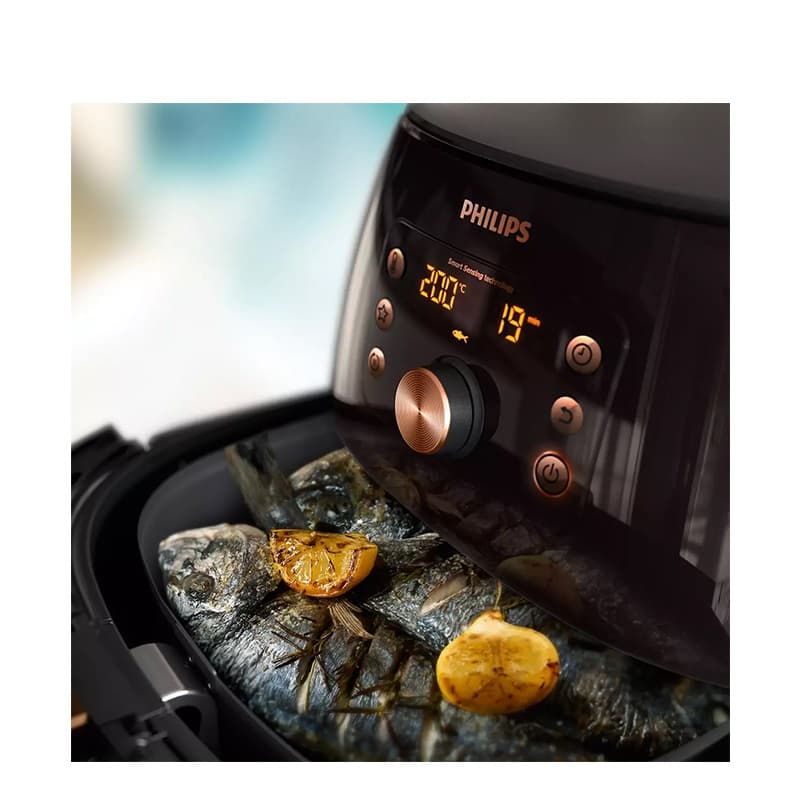 سرخ کن فیلیپس مدل PHILIPS HD9863 دارای تکنولوژی های منحصر بفرد نظیر «Smart Sensing» جهت تنظیم هوشمندانه دما و زمان با توجه به حجم و مقدار مواد غذایی و تکنولوژی «Rapid Air» جهت گردش سریع هوا و کاهش بو در هنگام سرخ کردن است.