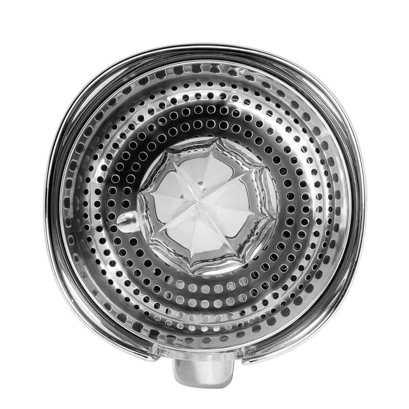 یک آبمرکبات گیری برای آبگیری هر نوع و اندازه مرکبات. تا آخرین قطره آب از کوچکترین لیمو تا بزرگترین گریپ فروت فشرده می شود. پس از آبگیری کافی ست چکه گیر را به سمت بالا بچرخانید تا از چکه کردن آن جلوگیری شود. طرح مخروطی آبگیری بصورت منحصر به فرد دارای باله و موجدار است تا حداکثر آبگیری را از هر اندازه از میوه استخراج کند و قابل شستشو در ماشین ظرفشویی است . بازوی سه لولایی ، فشار رو به پائین را در طول فرآیند آبگیری تضمین می کند و تا زمانی که بازو پائین نیامده و فشار کافی در بالای مخروط قرار نگیرد، سوئیچ اجازه چرخش مخروط را نخواهد داد.