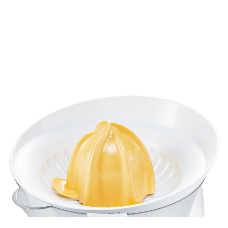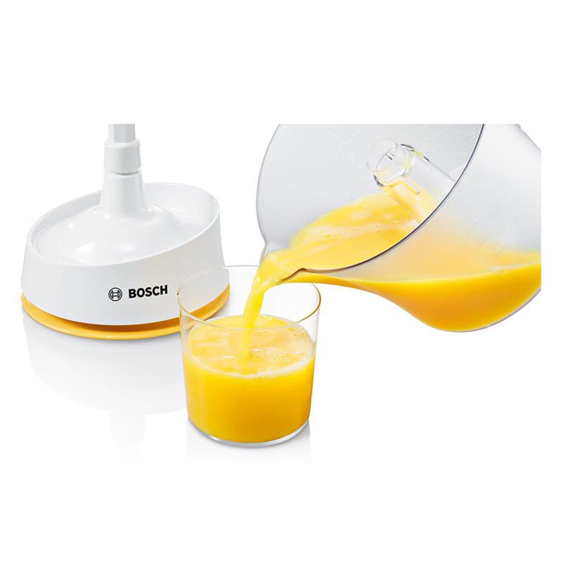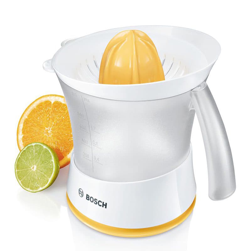 آب مرکبات گیری بوش مدل MCP3500، دارای موتور کم مصرف 25 واتی با طراحی زیبا و در عین حال مدرن ساخت کشور اسلوونی می‌باشد. در نگاه اول ممکن است قدرتمند به نظر نرسد ولی در زمان عملکرد به راحتی و بصورت کامل آب پرتقال، آب لیمو و سایر مرکبات را از آن‌ها جدا می‌سازد. این محصول دارای بدنه پلاستیکی می‌باشد و ترکیب رنگ‌های سفید و زردی به کار رفته زیبایی خاصی به آن بخشیده است. سیستم عملکرد این دستگاه بصورت اتوماتیک می‌باشد به طوری که با فشار میوه بر روی تیغه مخروطی شکل شروع به کار خواهد کرد. پارچ آب مرکبات گیری بوش MCP3500 به راحتی از دستگاه جدا شده و امکان جابه‌جا کردن آن و استفاده به عنوان پارچ آب میوه بعد از اتمام کار با دستگاه را فراهم می‌کند. از دیگر ویژگی‌های آب مرکبات گیری MCP3500، می‌توان به محفظه نگهداری سیم برق، قابلیت تنظیم و مقدار پالپ در آبمیوه و امکان شستشو تمامی قطعات داخل ماشین ظرفشویی اشاره کرد.
