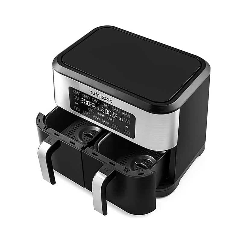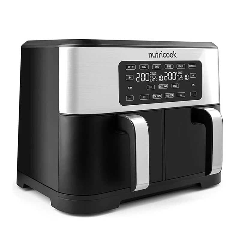 سرخ کن نوتریکوک مدل NUTRICOOK AF800 با توان مصرفی 2800 وات و ظرفیت 8 لیتر (هر سبد 4 لیتر)، از سری سرخ کن های کم روغن و بدون روغن نوتریکوک به حساب می آید که ساخت کشور چین می باشد. این سرخ کن (هواپز) دارای دو سبد بسیار بزرگ با کنترل مستقل است این امکان را فراهم کرده است تا بتوانید غذا های مختلف را به روش های مختلف به طور همزمان بپزید. در ادامه به بررسی مشخصات کامل این محصول می پردازیم.[caption id="attachment_61512" align="aligncenter" width="500"]سرخ کن نوتریکوک مدل NUTRICOOK AF800 سرخ کن نوتریکوک مدل NUTRICOOK AF800[/caption]