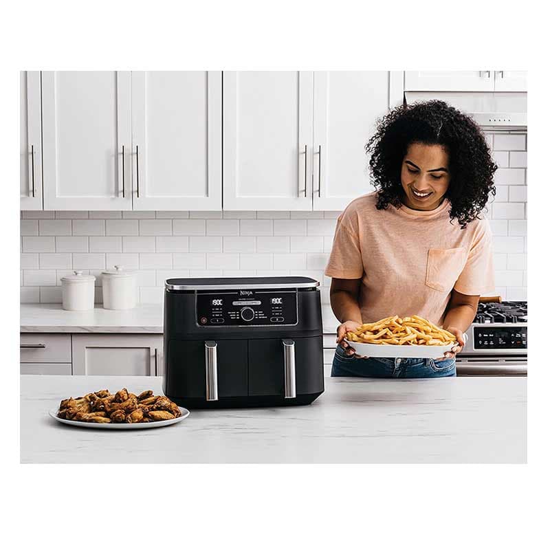 قیمت سرخ کن دوقلو نینجا مدل AF400[/caption] جنس بدنه سرخ کن دوقلو نینجا مدل AF400 پلاستیک و جنس کاسه روکش نچسب می باشد؛ بدنه این محصول دارای عایق سرد است و بخش های پلاستیکی که با مواد غذایی در تماس هستند فاقد مواد مضر شیمیایی (BPA) می باشند.سرخ کن دوقلو نینجا مدل AF400 دارای کنترل دکمه ای، نمایشگر دیجیتال، تایمر، کانوکشن (فن)، قابلیت تنظیم دما، خاموش شدن خودکار، چراغ نشانگر زمان پخت، نشانگر روشن بودن دستگاه، اعلام هشدار در پایان برنامه، پایه ضد لغزش و سرخوردن جهت حفظ ایمنی، پایه لاستیکی برای ثبات بیشتر دستگاه و محفظه برای جمع كردن سیم برق می باشد.قطعات سرخ کن دوقلو نینجا مدل AF400 به راحتی قابل شستشو در ماشین ظرفشویی می باشند.شرایط بازگشت کالا