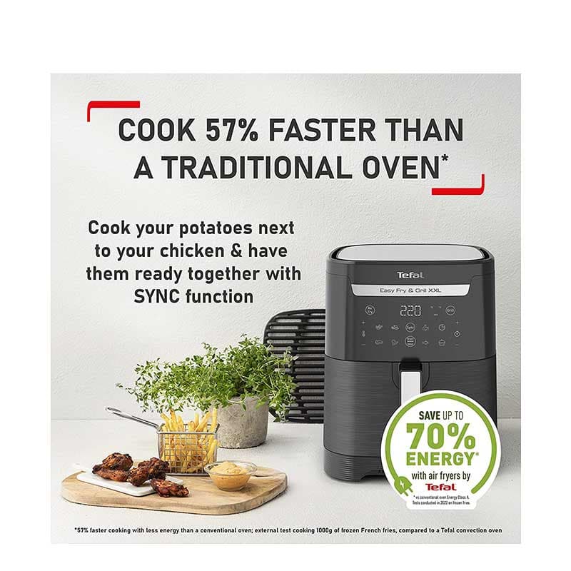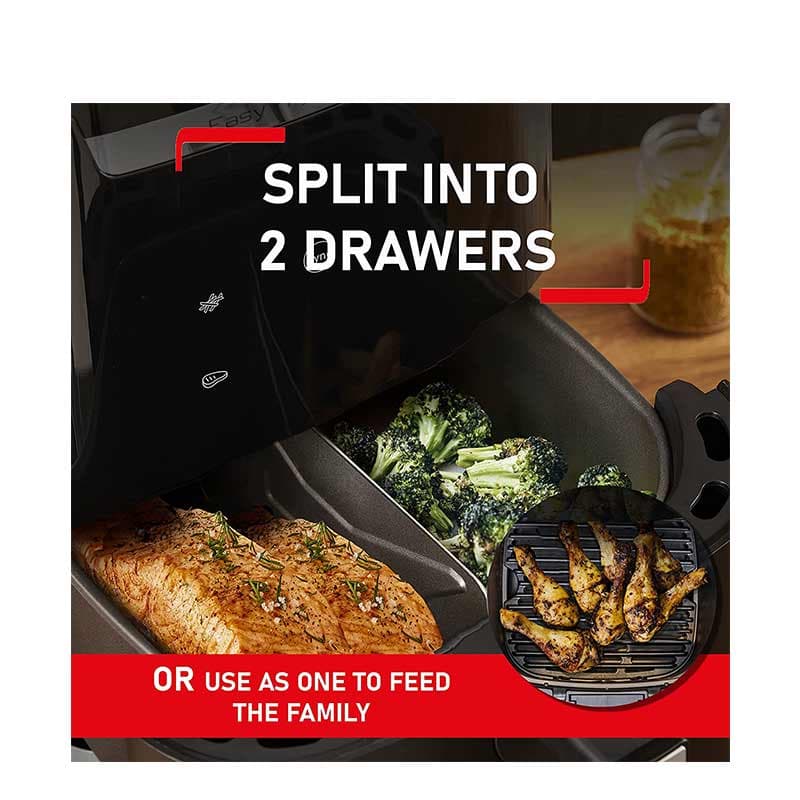 سرخ کن تفال مدل TEFAL EY801D دارای بدنه ای از جنس تلفیقی استیل و پلاستیک با عایق سرد، طراحی زیبا و کاربردی و ابعادی مناسب می باشد؛ همچنین این سرخ کن از سری سرخ کن های کم روغن و بدون روغن چند کاره است که از موتور قدرتمند با توان مصرفی 1650 وات، عملکرد های سرخ کن و گریل، کاسه مربع شکل با روکش نچسب (با قابلیت تقسیم به 2 بخش مساوی 3.25 لیتری) و ظرفیت 6.5 لیتر، سبد کشویی و دستگیره خنک برخوردار می باشد.سرخ کن تفال مدل EY801D از امکان گریل گوشت و سبزیجات بدون ایجاد دود، صرفه جویی در زمان پخت با بهره مندی از امکان همگام سازی پخت برای هر 2 قسمت سبد و کاهش مصرف 99 درصدی روغن (امکان سرخ کردن 1 کیلو گرم سیب زمینی با 15 میلی لیتر روغن) بهره مند است.[caption id="attachment_64428" align="aligncenter" width="293"]قیمت سرخ کن تفال مدل TEFAL EY801D قیمت سرخ کن تفال مدل TEFAL EY801D[/caption] مصرف روغن و غذا های سرخ کردنی سبب بروز بسیاری از بیماری ها در بین مردم سراسر جهان در تمامی سنین می باشد؛ اکثر مردن خصوصا کودکان از خوردن غذا های ترد و برشته لذت می برند، با خرید سرخ کن تفال مدل TEFAL EY801D می توانید با کاهش 99 درصدی مصرف روغن، وعده های غذایی مغز پخت شده با سطحی برشته و طلایی را بدون زیان فراهم نمایید.