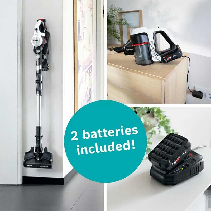 لوازم جانبیآداپتور شارژر ، داکت قابل اتصال به دیوار برای نگهداری راحت دستگاه و لوازم جانبی ، نازل شکاف و گوشه ها ، نازل مخصوص لوازم جانبی برای کیبورد و کشو مناسب فضاهای کوچک و دشوار بدون مکیدن اشیایی مانند گیره کاغذ و سکه ، ۲ عدد باتری قابل جایگزین ، برس ۲ در ۱ مختص نظافت مبلمان و اثاثیه منزل ، نازل XXL بزرگ مختص نظافت لوازم داخلی ساختمان