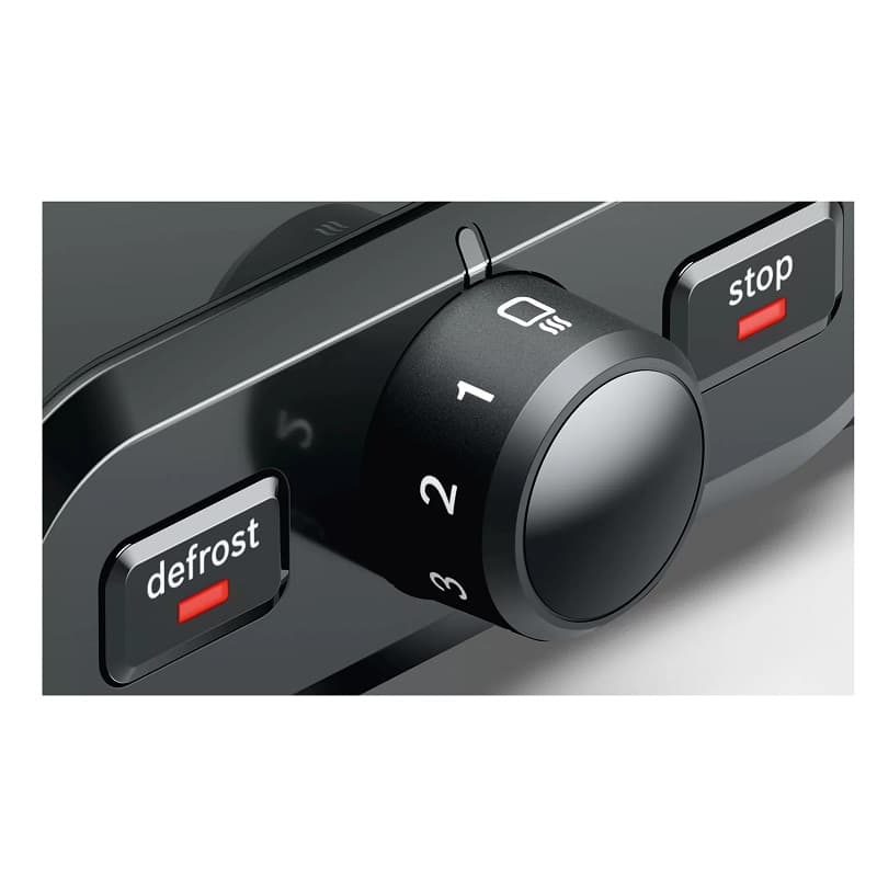 دکمه هادکمه برای بالا بردن نان ، دکمه یخ زدایی با نشانگر LED ، دکمه توقف ، دکمه کنترل چرخشی برای تنظیم دما