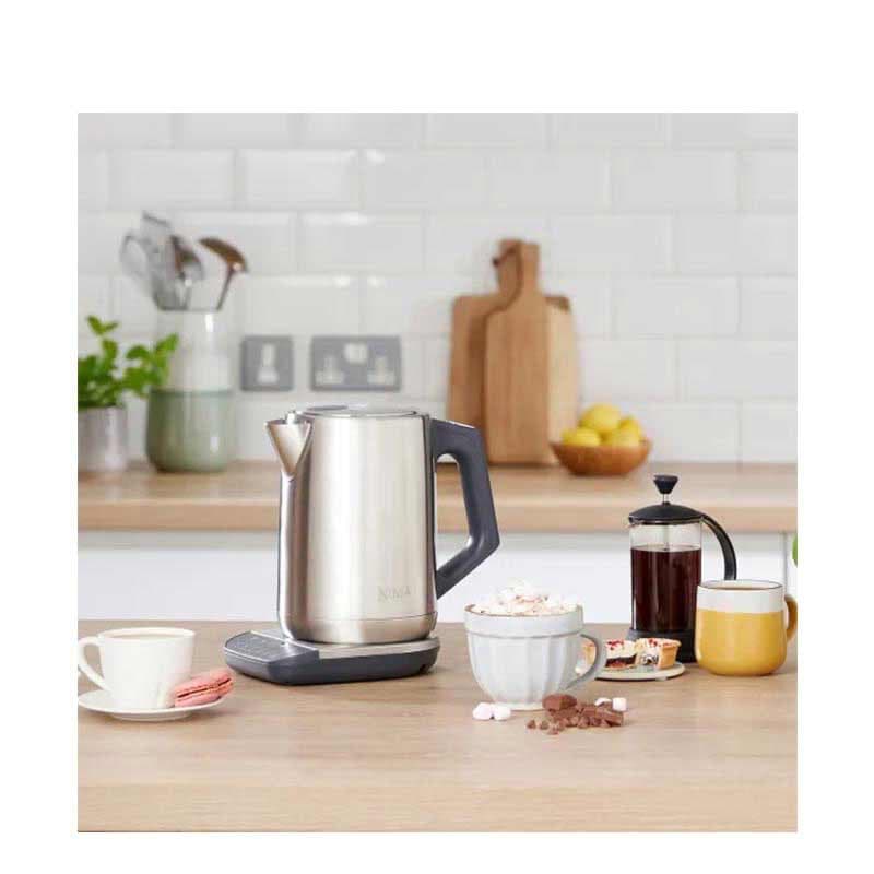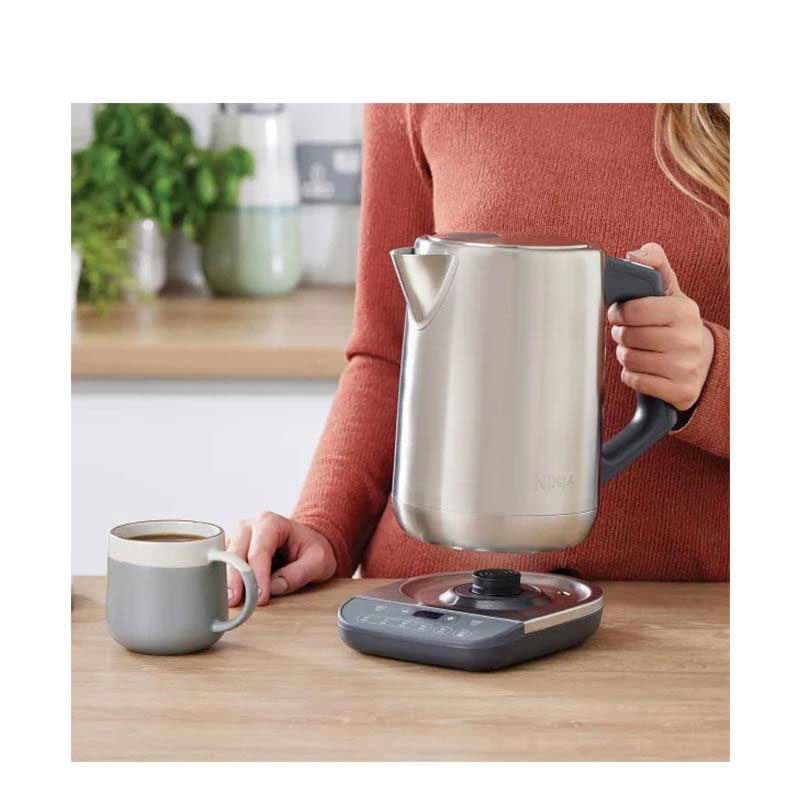 خرید کتری برقی نینجا مدل NINJA KT201UK[/caption] کتری برقی نینجا مدل KT201UK دارای قابلیت انتخاب 6 درجه دمای از پیش تنظیم شده را دارد؛ 100 درجه سانتی گراد برای تهیه جای سیاه و چای سبز، 60 تا 90 درجه سانتی گراد برای تهیه چای سفید و اولانگ، 95 درجه برای تهیه انواع قهوه می باشد.با کتری برقی نینجا مدل KT201UK کم تر از 5 دقیقه آب جوش مناسب تهیه انواع نوشیدنی های داغ را آماده نموده و نوشیدنی های داغ مورد علاقه خود را به راحتی و به سرعت در هر زمانی از شبانه روز تهیه کرده و نوش جان نمایید.