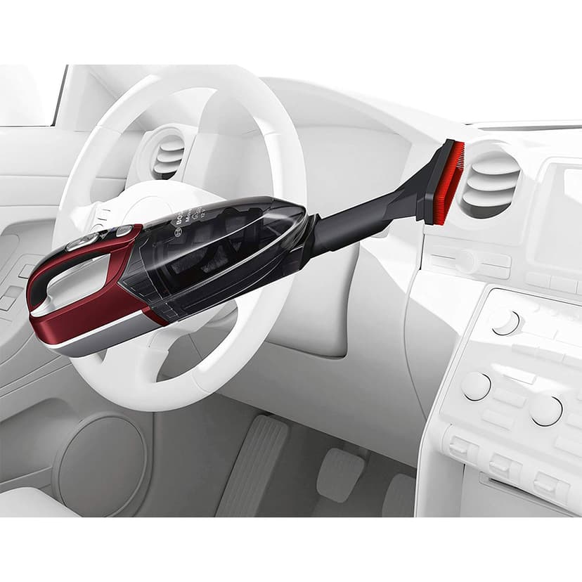 جارو شارژی بوش BOSCH مدل BHN12CAR وسیله ای با طراحی بدون سیم بوده که موجب راحتی کار با دستگاه میشود. از این جارو شارژی بوش برای نظافت محیط منزل و داخل ماشین استفاده میشود. سیستم Airflow این دستگاه موجب مکش بالا میشود و پاکسازی بالایی را تضمین می نماید. باتری 12 ولتی جارو شارژی بوش از نوع NI-MH بوده و قابلیت استفاده مستمر تا 14 دقیقه را دارد. همچنین در مدت 12 ساعت به صورت کامل شارژ میشود. در صورت کم شدن شارژ ،نشانگر تعبیه شده روی بدنه روشن میشود و شما را مطلع میسازد. مخزن دستگاه با ظرفیت 0.3 لیتر حجم مناسبی از گرد و غبار را درون خود جای میدهد  و با فشردن یک کلید به راحتی از بدنه اصلی جداسازی میشود. فیلتر بهداشتی تعبیه شده درون مخزن نیز از خروج گرد و غبار به محیط جلوگیری می نماید.همراه با دستگاه یک سری باریک برای گردگیری گوشه ها و نقاط دور از دسترس ، یک سری کوچک برای تمیز نمودن مبلمان و صندلی ماشین و یک سری برس دار برای جمع آوری موی حیوانات ارائه شده است.