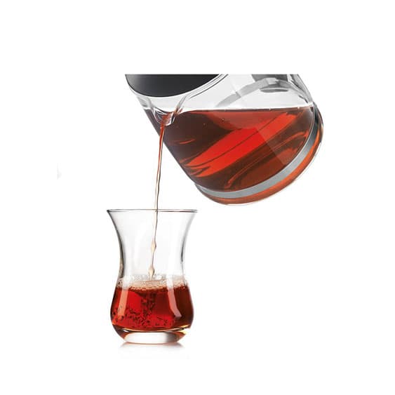قوری شیشه ای و کتری استیل ساخته شده است. قابلیت