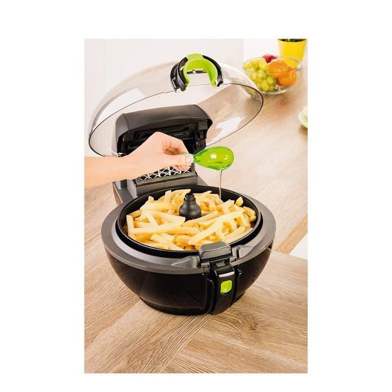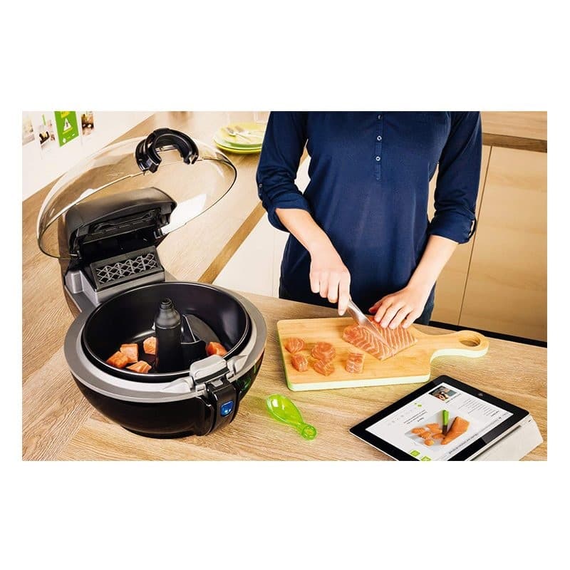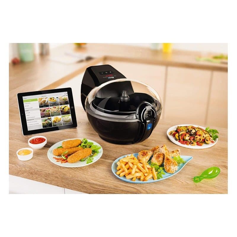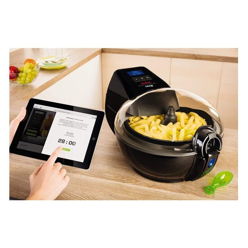 سرخ کن تفال مدل AH 9808 می تواند یک کیلو گرم مواد غذایی را تنها با یک قاشق روغن و در ۳۰ درصد زمان کمتر سرخ کند . علاوه بر این با امکان برقراری ارتباط بین سرخ کن و دستگاه موبایل یا تبلت شما از طریق بلوتوث ، می توان برنامه های سرخ کن را تنظیم کرد این مدل از سرخ کن ها از جریان هوای داغ جهت پخت و سرخ کردن مواد غذایی استفاده می کنند . در این بین خبری از تماس مستقیم روغن داغ با مواد غذایی ، مثل کاری که در سرخ کن های معمولی انجام می شود ، نیست  به همین خاطر غذاهای سرخ شده با این سرخ کن تفال تنها ۳% چربی اضافی دارند . همچنین غذاهای سرخ شده با سرخ کن AH 9808 تفال در مقایسه با انواع طبخ شده در سرخ کن های معمولی که مقادیر زیادی روغن به خود جذب کرده اند ، بسیار سالم تر هستند ضمن این که عطر و طعم غذاهای سرخ شده را هم دارند .