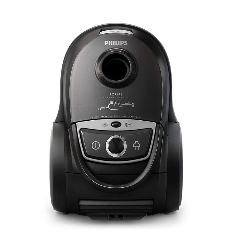 جاروبرقی فیلیپس مدل FC9176/01 وات 2200 و قدرت مکش 500 وات امکان محیطی تمیز، عاری از هرگونه گرد و خاک را فراهم می کند. این دستگاه با طراحی شکیل و مدرنی که دارد برای مصارف خانگی بسیار ایده آل و مناسب می باشد. در ضمن با وجود ۲ چرخ نسبتا بزرگی که در جاروبرقی 9176 تعبیه شده باعث می گردد تا در اثر حرکت واژگون نشود و به راحتی به هر سمتی که نیاز باشد هدایت گردد. گنجایش جمع آوری گرد و غبار این دستگاه 4 لیتر می باشد که با توجه به صفحه نمایشگر روی دستگاه زمان پر شدن کیسه نشان داده می شود. بنابراین با چنین ظرفیتی دیگر نیازی به هر سری خالی کردن کیسه نیست و می توان چندین دفعه فضای اتاق را جارو کرد. همچنین فیلتری که در این جاروبرقی بکار رفته شده از نوع HEPA با قابلیت جذب 99.95% ذرات هوای خروجی می باشد که براحتی جداشده و می توان برای تمیز کردن، آن را با آب کاملا شست و خشک کرد و دوباره سر جاش گذاشت.