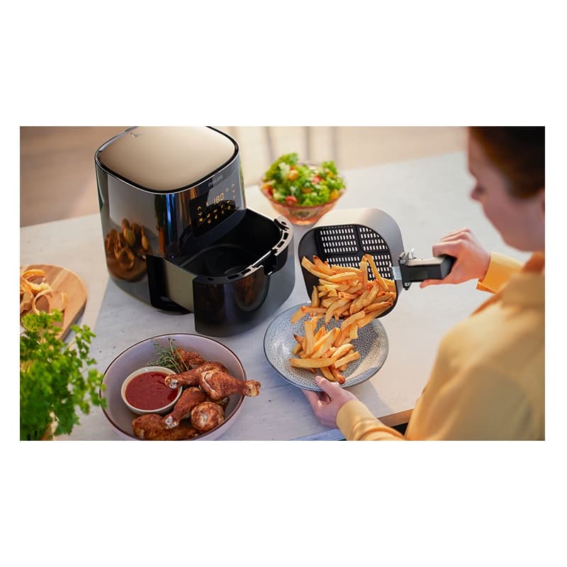 خرید مشخصات سرخ کن فیلیپس مدل PHILIPS HD9252[/caption] غذا های سرخ کردنی، ترد و برشته و طلایی شده به دلیل مصرف زیاد روغن همیشه سبب بروز اضافه وزن و بسیاری از بیماری های خطرناک می گردد؛ که این مسئله برای تمام سنین از خردسال تا سالمندان صادق است؛ با سرخ کن فیلیپس مدل HD9252 می توانید با خیال راحت وعده های غذایی را ترد و برشته و طلایی شده تهیه و میل نمایید چرا که سیستم «Rapid Air» سبب مغز پخت شدن مواد غذایی و برشته شدن سطح روی آن می گردد.سرخ کن فیلیپس مدل HD9252 مجهز به نمایشگر «LED»، صفحه کنترل لمسی، نشانگر روشن بودن دستگاه، پایه لاستیکی ضد لغزش و سرخوردن برای ثبات بیشتر دستگاه و حفظ ایمنی، اعلام هشدار در پایان برنامه، چراغ نشانگر زمان پخت، کلید روشن و خاموش، سبد کشویی و تایمر می باشد؛ همچنین درب دستگاه توسط یک دکمه به راحتی باز می شود. [caption id="attachment_63188" align="aligncenter" width="302"]