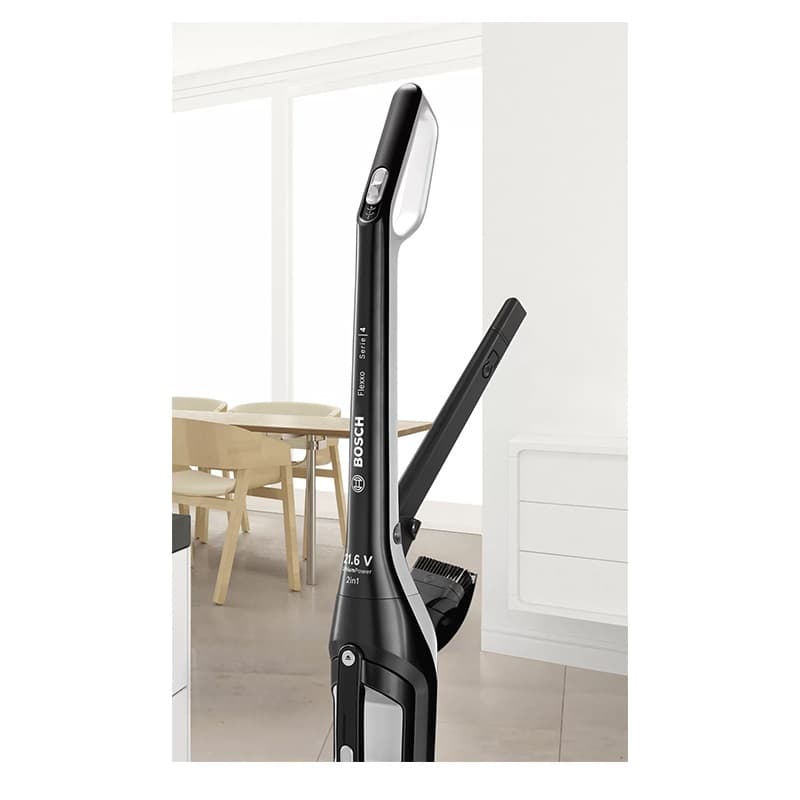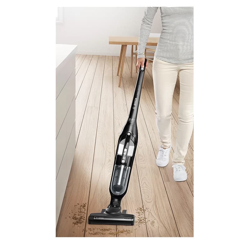 جارو شارژی بوش BOSCH مدل BBH32101 یکی از جارو شارژی های شرکت بوش میباشد که کارکرد بسیار بالایی دارد . دسته ارگونومیک این جارو شارژی در کنار وزن سبک و بدنه قابل انعطاف آن ، موجب استفاده آسان و راحت از دستگاه میشود و میتوان انواع سطوح مانند فرش ، موکت ، پارکت و حتی زیر مبلمان را نظافت نمود. جارو شارژی BOSCH  دارای 2 سطح مکش میباشد که متناسب با میزان کثیفی و نوع سطوح میتوانید میزان مکش را توسط کلید کشویی روی دسته تنظیم نمایید. باتری 21.6 ولتی جارو شارژی BBH32101 از نوع LI-ION بوده که قابلیت استفاده مستمر تا 50دقیقه را دارد و در مدت زمان 4 الی 5 ساعت به صورت کامل شارژ میشود.این جارو شارژی هم به صورت ایستاده قابل استفاده است و قابلیت جدا شدن و استفاده به صورت دستی نیز داراست.
