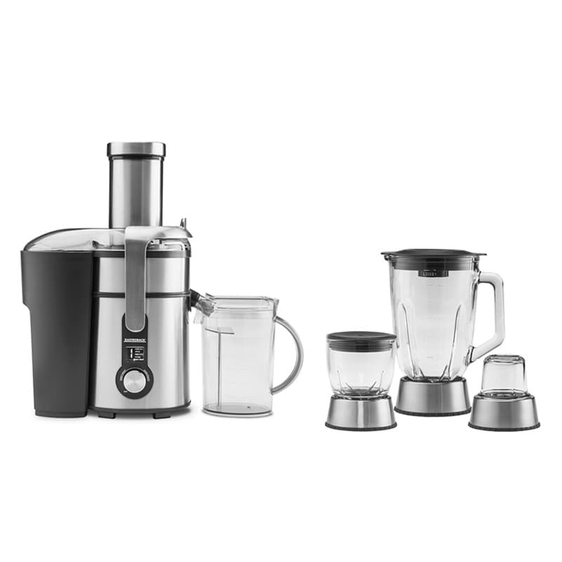 آبمیوه گیری گاستروبک مدل GASTROBACK 40152 با طراحی ارگونومیک و جذابی که دارد، دکوراسیون آشپزخانه شما را تکمیل می کند. این محصول دارای موتور قوی با قدرت 1300 وات، مخزن آبمیوه گیری با ظرفیت 1.2 لیتر، مخزن تفاله با ظرفیت  2 لیتر و پارچ مخلوط کن با ظرفیت کارکرد 1.5 لیتر می باشد.