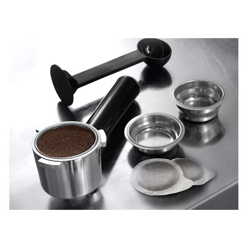 1 محفظه قهوه، کنترل دکمه ای، نشانگر سطح آب، نشانگر روشن بودن دستگاه، سینی چکه گیر، قاشق اندازه گیری قهوه و سیستم خاموش شدن خودکار می باشد.جنس بدنه