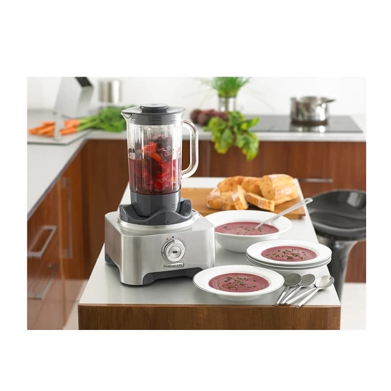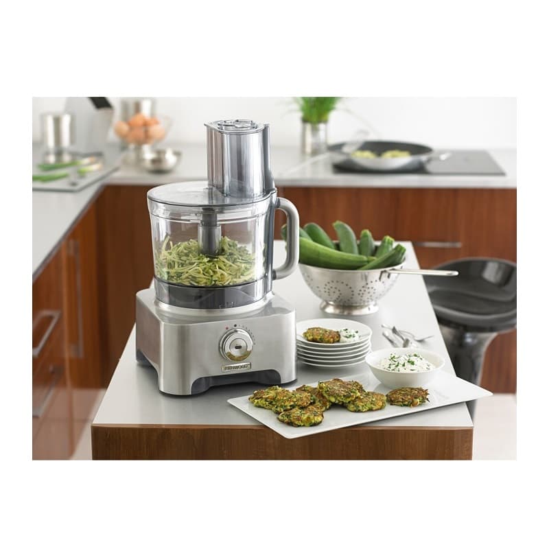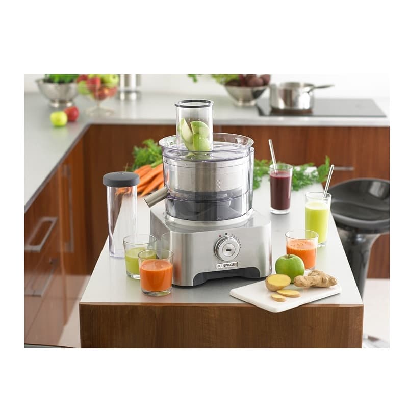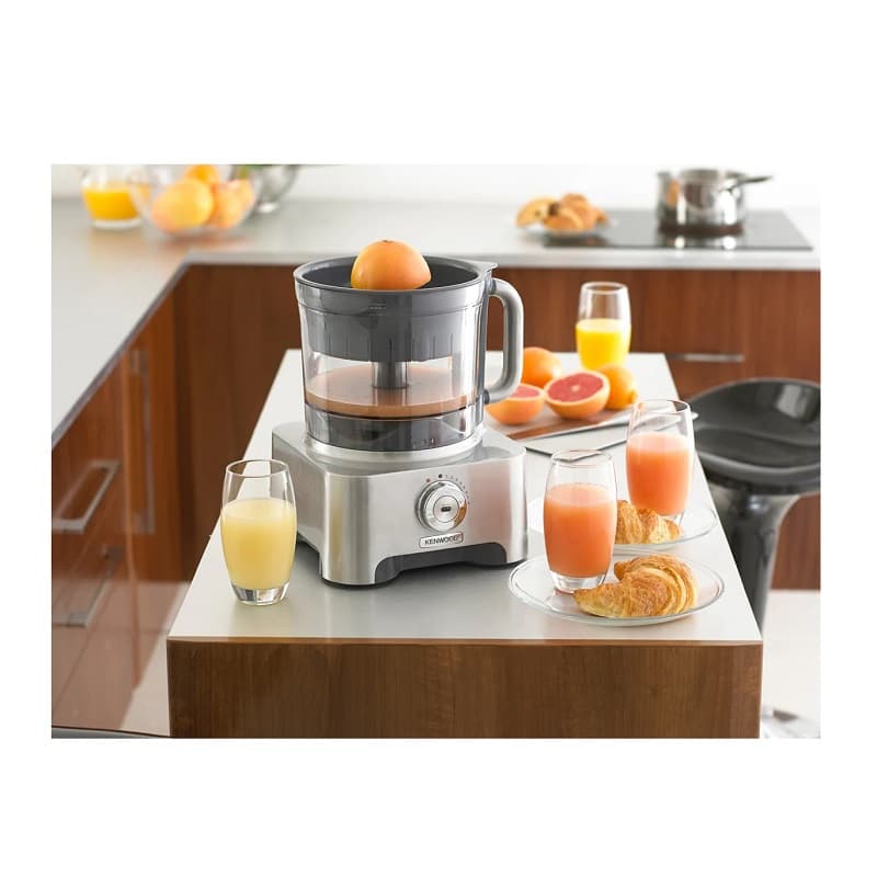 غذاساز کنوود مدل FPM902 دارای توان مصرفی 1300 می باشد که به وسیله سری مختلف آن میتوان 50 عملکرد متفاوت داشت. عملکرد غذاساز شامل آسیاب، خرد کن، مخلوط کن، همزن، آبمیوه گیری، خلال کن، آب مرکبات گیری و … می باشد. شش صفحه های مخصوص رنده ریز و درشت، ورقه ریز و درشت و پوره و خلال از جنس استیل ضد زنگ برای این دستگاه در نظر گرفته شده است. سری همزن دوتایی برای هم زدن تخم مرغ و تهیه انواع خامه و سس کمک بسیار بزرگی برای شماست. با استفاده از سری خمیر زن دستگاه می توان خمیر نان و خمیر پیتزا تهیه کرد.ظرف اصلی غذا ساز دارای 4 لیتر ظرفیت است و از جنس پلاستیک می باشد. این ظرف مدرج و شفاف است و شما می توانید محتویات داخل آن را مشاهده کنید. پارچ مخلوط کن نیز دارای 1.6 لیتر ظرفیت و از جنس شیشه می باشد. به وسیله دکمه چرخشی روی بدنه دستگاه می توانید سرعت دستگاه را تنظیم کنید که دارای 8 مرحله سرعت می باشد و حتی از عملکرد پالس هم استفاده کنید. جنس تیغه های به کار رفته در غذاساز از استیل ضد زنگ می باشد که بسیار تیز است و مناسب برای خرد کردن انواع مواد غذایی از جمله گوشت، سبزیجات و ... است.