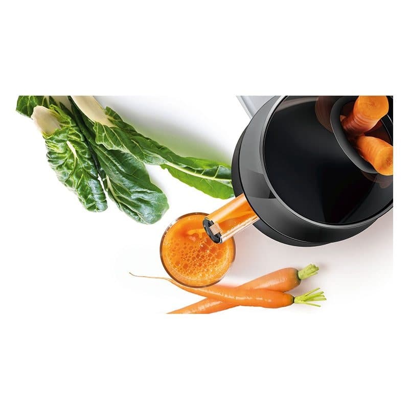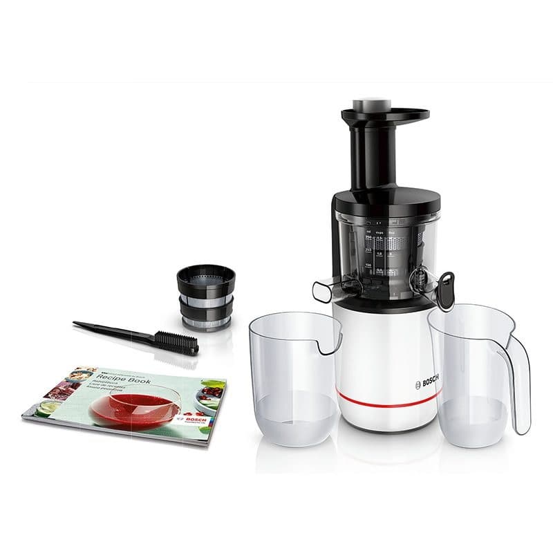 عصاره گیر بوش مدل BOSCH MESM500W، عصاره گیری، از برند معروف و محبوب آلمانی بوش است. این عصاره گیر تک کاره بوده و با استفاده از آن تنها می توان کار آبمیوه گیری را انجام داد. قدرت موتور 150 واتی این عصاره گیر می تواند به گرفتن آسان انواع آب میوه کمک کند. حداکثر قدرت چرخش موتور این عصاره گیر، 55 دور در دقیقه بوده که توان مناسبی برای دستگاه محسوب می شود. این دستگاه فاقد عملکرد پالس است و تنظیمات و کنترل آن را می توان از طریق دکمه های دستگاه انجام داد.دو مخزن جداگانه برای آبمیوه و تفاله ها در این دستگاه تعبیه شده اند و به این وسیله می توان از مخلوط شدن تفاله و آبمیوه جلوگیری کرد. ظرفیت مخزن آبمیوه 1 لیتر و ظرفیت مخزن تفاله این دستگاه 1.3 لیتر است که یک گنجایش مناسب برای استخراج آب میوه با حجم زیاد استآب م. این دستگاه تک کاره که تنها برای خارج کردن آب میوه ها مورد استفاده می گیرد، فاقد مخلوط کن، خرد کن و آسیاب است. دهانه ورودی عصاره گیر بوش مدل BOSCH MESM500W بسیار کوچک بوده و از طریق آن نمی توان میوه های درشت را به دستگاه وارد کرد؛ در نتیجه برای انجام عمل آبمیوه گیری، باید ابتدا میوه های درشت را به ذرات کوچکتری تقسیم کرد.